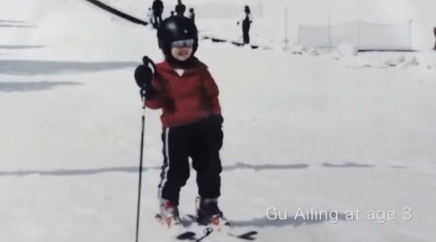 谷爱凌3岁的时候,母亲谷燕就带她接触滑雪,但是当时是以玩耍为主。