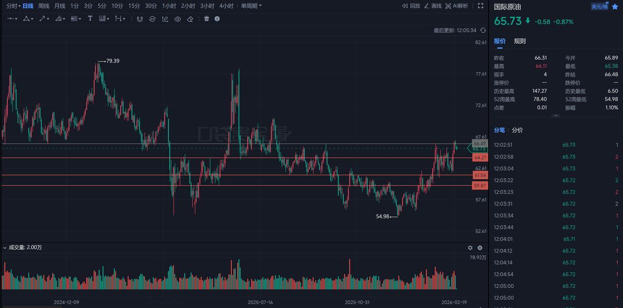原油为何大涨又回落? 一、长期趋势结构分析(2022-2026) 1. 长期下降通道 从2022年6月高点124.77美元开始,原油形成了清晰的长期下降通道: 上轨:连接2022年6月高点124.77与后续反弹高点 下轨:连接2022年低点与2023年低点 当前位置:价格约65.73美元,正处于下降通道下轨附近 这个通道持续了约3.5年,是典型的长期熊市结构。 2. 为何从高点不断下滑? 结构性供需变化全球能源转型加速,长期需求预期下修OPEC+产能博弈,减产保价与市场份额的反复拉锯。非OPEC供应增长美国页岩油、巴西、圭亚那等增产。全球增长放缓,中国需求复苏不及预期,欧美制造业疲软,地缘政治溢价消退2022年俄乌冲突的极端溢价逐步回归 二、中短期走势分析(2024-2026) 阻力位(由上至下): 79.39 —— 2024年4月高点 72.61 — 前期密集成交区 67.61 — 近期反弹高点 66.49 —— 当前测试的关键位 ── 65.73 —— 当前价格 ─ 支撑位(由下至上): 64.27 —— 短期支撑 61.54 —— 中期关键支撑 59.87 —— 重要防线 54.98 —— 2025年9月低点(52周最低) 当前技术状态,原油正处于一个关键决策点: 从54.98低点反弹至67.61,涨幅约23% 目前在66.49-65.73区域遇阻回落 绿色虚线(约66.50)是多次测试的关键阻力线 下方橙色水平线构成支撑网格 短期判断:反弹遇阻,测试支撑有效性。若65失守,可能回踩61-62区域。 三、原油与美元指数同步性分析 为何常出现同步?通常情况下: 正常关系:美元↑ → 原油↓(负相关,因原油以美元计价) 异常:美元与原油同向波动 同步上涨/下跌的可能原因 情景解释同涨:避险驱动地缘冲突升级时,美元(避险资产)与原油(战略资源) 同涨同跌:衰退交易全球经济放缓预期,美元资产与大宗商品同遭抛售 同跌:流动性收紧美联储鹰派立场,强美元压制原油,但风险资产普跌拖累美元 同涨:再通胀交易通胀预期回升,实物资产与美元同受益(较少见) 当前最可能的解释 从2025年底至2026年初的走势看,更可能是"衰退担忧+政策不确定性": 特朗普2.0政策(关税、移民、财政)引发滞胀担忧 美联储维持高利率→强美元 同时高利率压制全球增长→原油需求预期下调 结果:美元因政策分化走强,原油因需求担忧走弱,看似"同步"实则是同一宏观因子的不同表达 四、综合走势预判 长期(6-12个月) 如果OPEC+深度减产、地缘冲突、美联储降息,大概率通道下轨反弹40%72-75美元。 如果供需弱平衡、宏观数据摇摆通道内震荡35%60-70美元区间。 如果全球经济衰退、非OPEC供应激增则下破通道25%50-55美元。 中短期(1-3个月) 关键观察点: 1. 65.73能否守住 → 决定短期方向 2. 66.49能否突破 → 反弹延续信号 3. 成交量配合 → 第一张图显示近期反弹有量,但遇阻缩量 基准情景: - 65-67区间震荡整理 - 向下测试64.27 → 61.54支撑带 - 若61.54失守,打开至55-58空间 - 若突破67.61,上看72-75。 原油的长期下滑是结构性熊市通道的产物,反映了能源转型、供应多元化与需求疲软的共振。与美元的"同步"更多是宏观不确定性下的暂时现象,而非相关性反转。当前新能源放缓,利好原油,而其处于长期通道下轨+短期反弹受阻的敏感位置,建议密切关注65-67区间的突破方向,这将决定下一阶段的主要趋势。