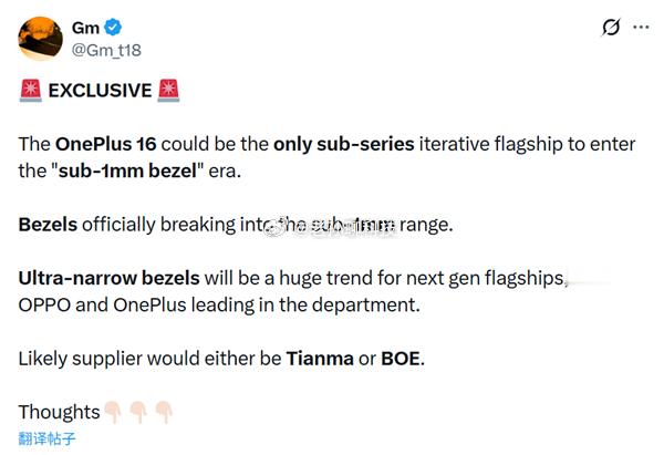 一加15的1.15mm四等边直屏刚封神,一加16就准备在边框上再卷出新高度