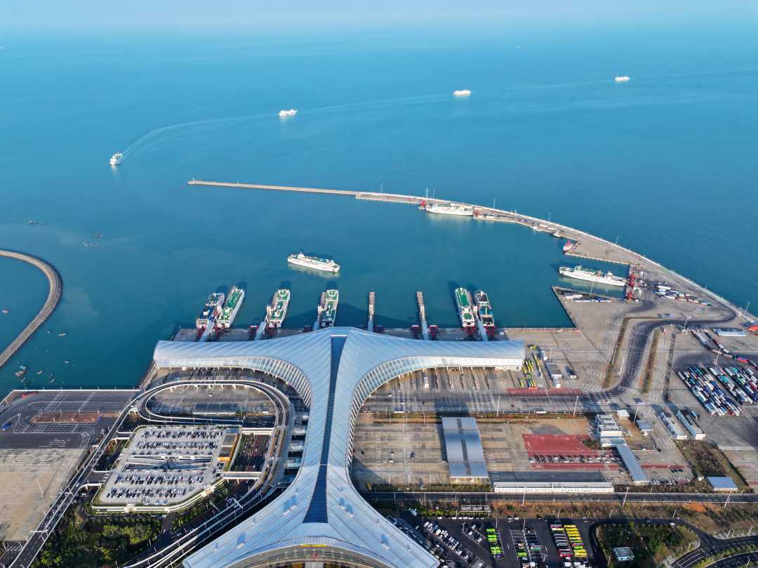 2月22日,海南海口新海港码头,客滚船正有序进出港口。