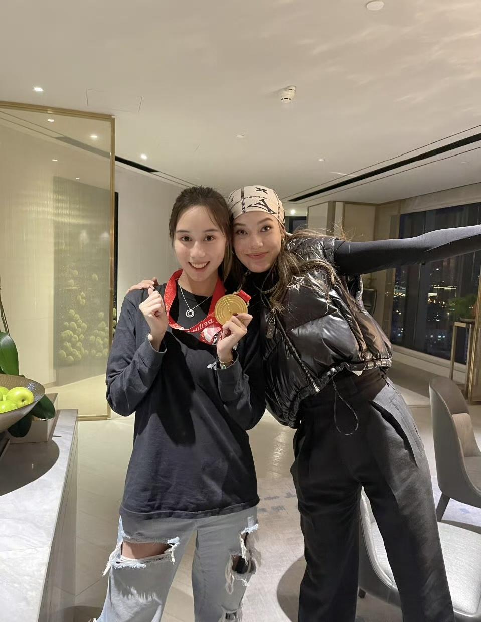2月22日,何超欣晒与谷爱凌合影,并配文:“宝贝你是最棒的”。 何超欣拿着谷爱凌的夺冠金牌,脸上露出甜甜的笑容,真心为好闺蜜开心。谷爱凌