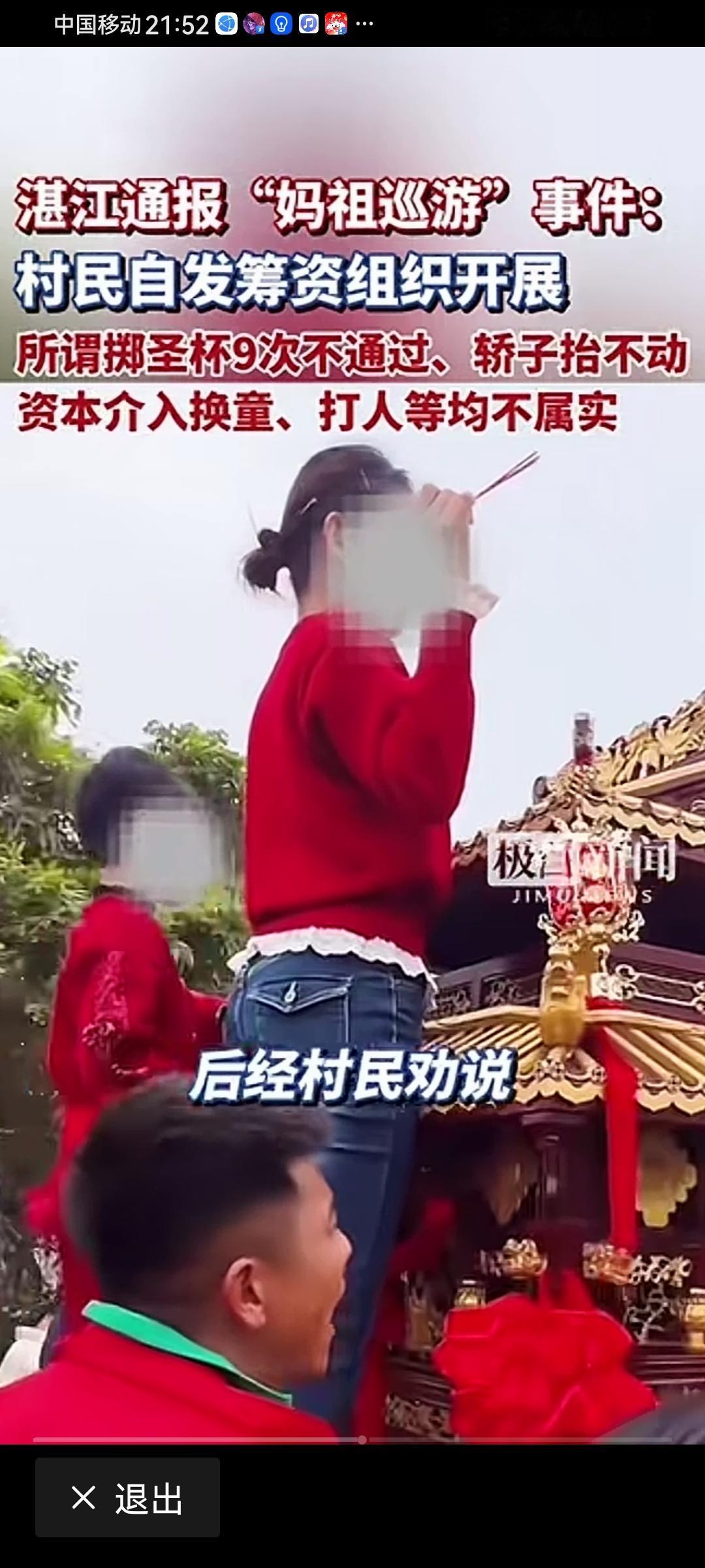 依我之见湛江根本不存在所谓的“妈祖巡游”事件,既没有选两个小妈祖,小妈祖也没有受到过任何委屈和威胁,网上所传视频应该是断章取义,曲解事,给当地民间文化习俗活动带来极大的负面影响,希望大家保持理智,不信谣,不传谣。