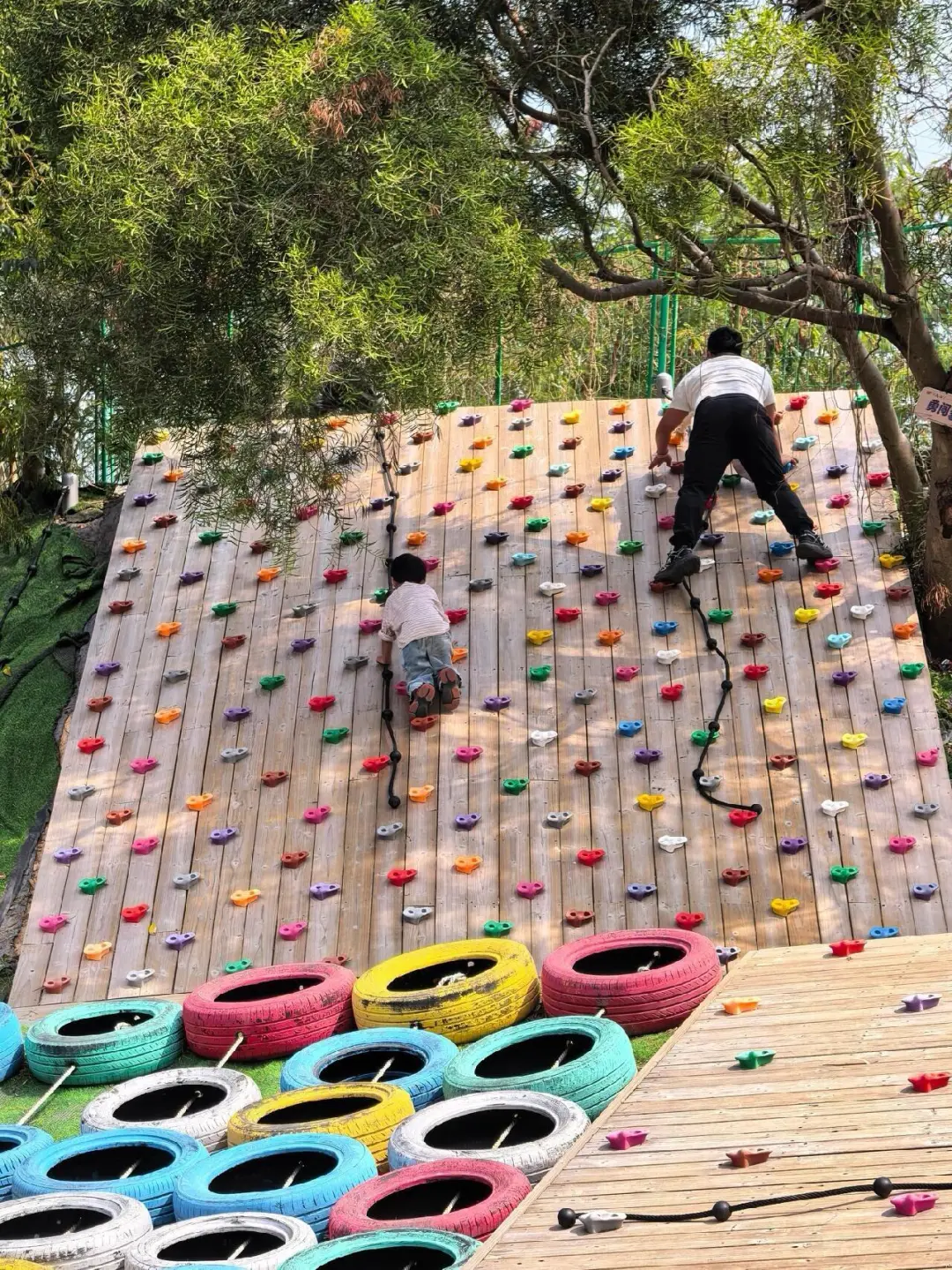 1️⃣无动力区是孩子的放电天堂,彩虹滑道、空中滑索、攀岩墙、火山岩蹦床、丛林攀爬网,小朋友能反复玩到尽兴。2️⃣手工DIY区免费体验恐龙考古、巧克力DIY、扎染、自然彩绘、陶泥创作。