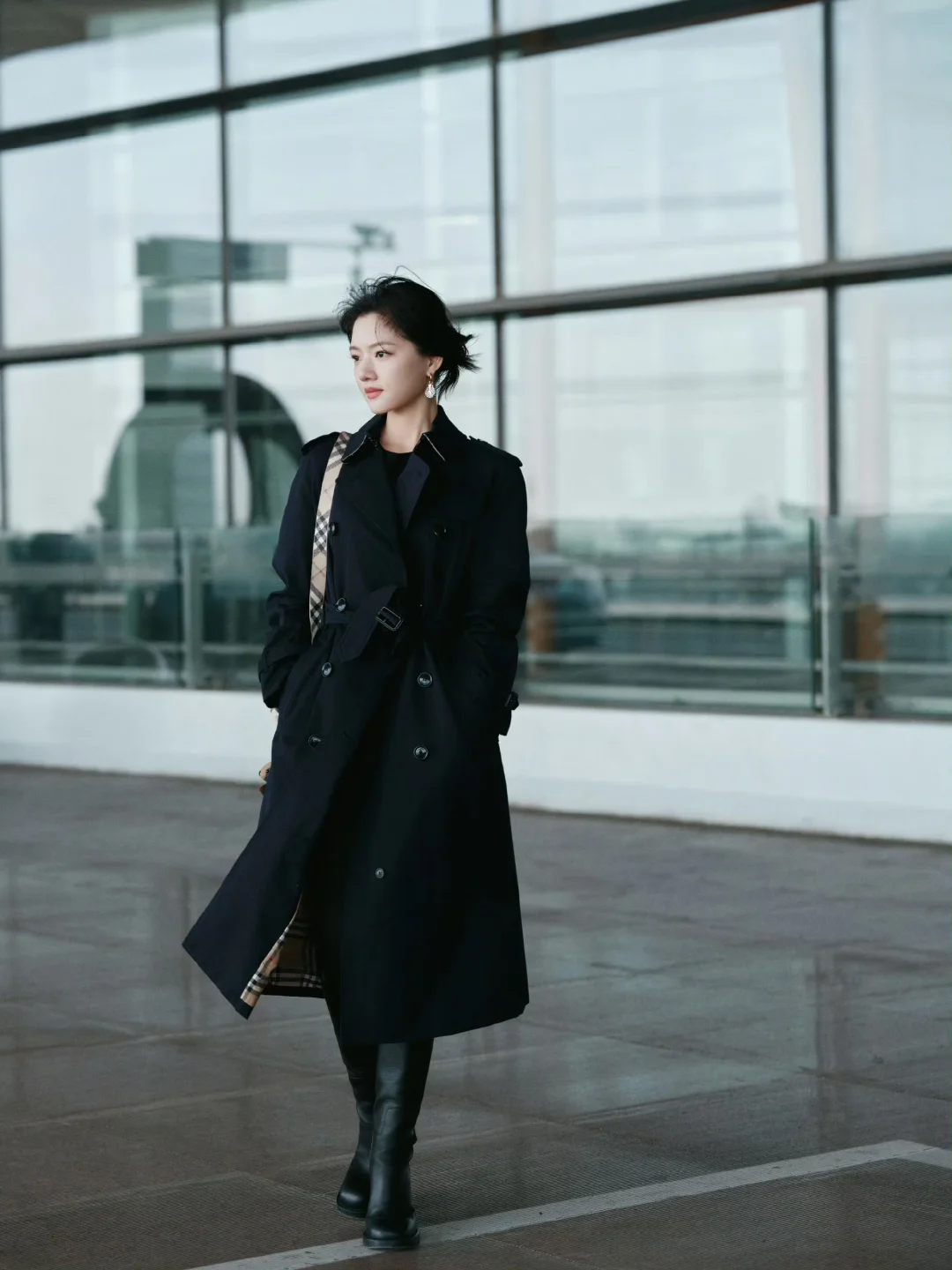 任敏首次时装周看秀出发,知性干练的一套
