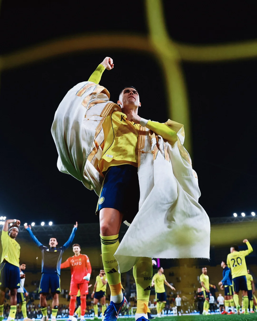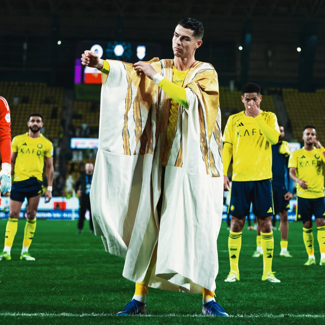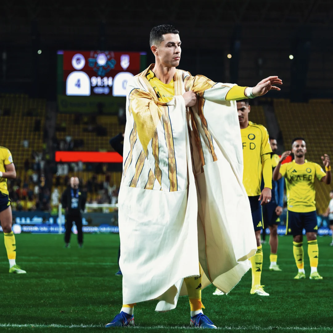 🌟 罗纳尔多进球后身着比什特长袍的举动,通过体育这一媒介,直接展现了沙特的传统文化。胜利队队长身着建队队服庆祝了足球成就,从而在足球场内向世界传达了历史故事,将体育时刻转化为一扇展现王国及其悠久历史的全球文化窗口。