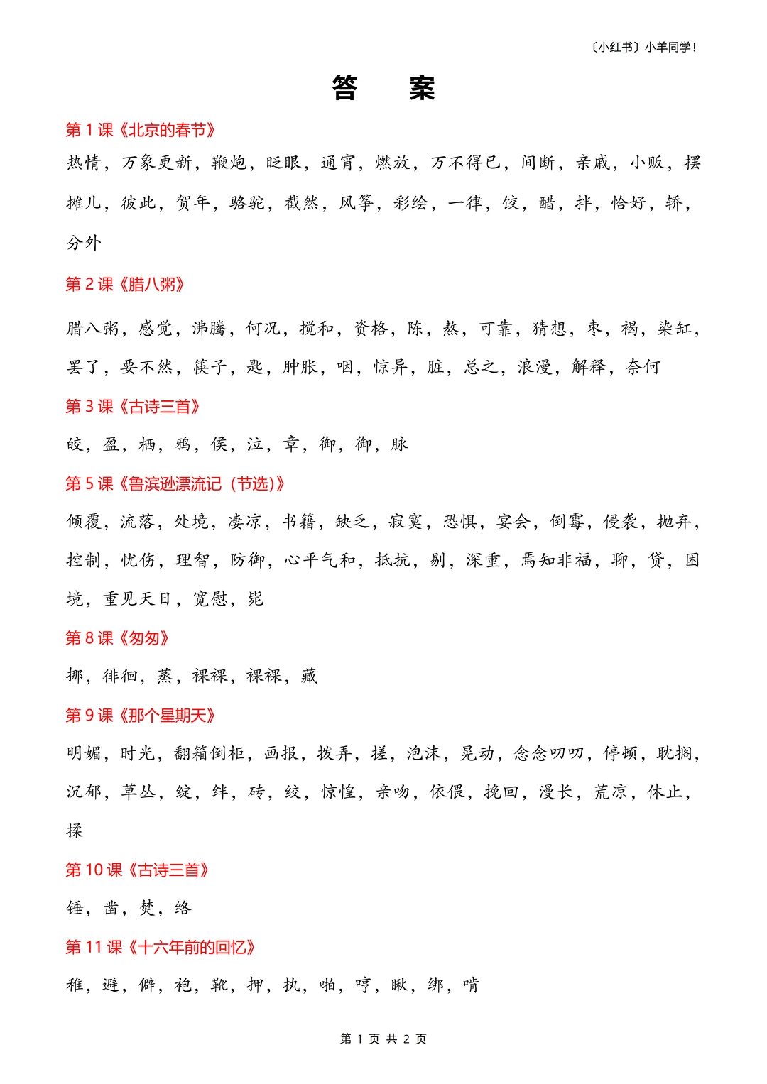 2⃣ 资料高度“浓缩”每课的生字词都融入到语句中,高效理解和记忆。
