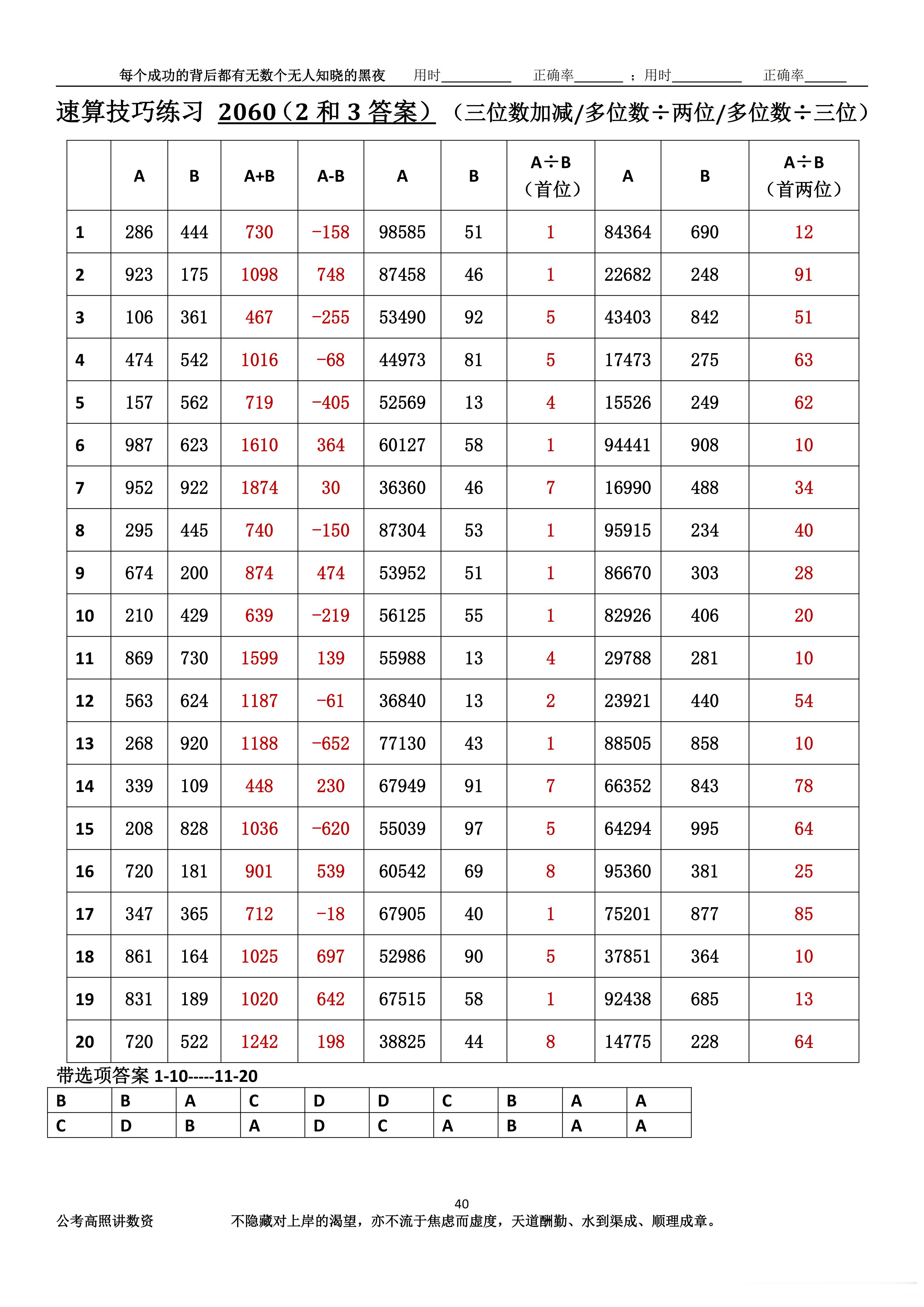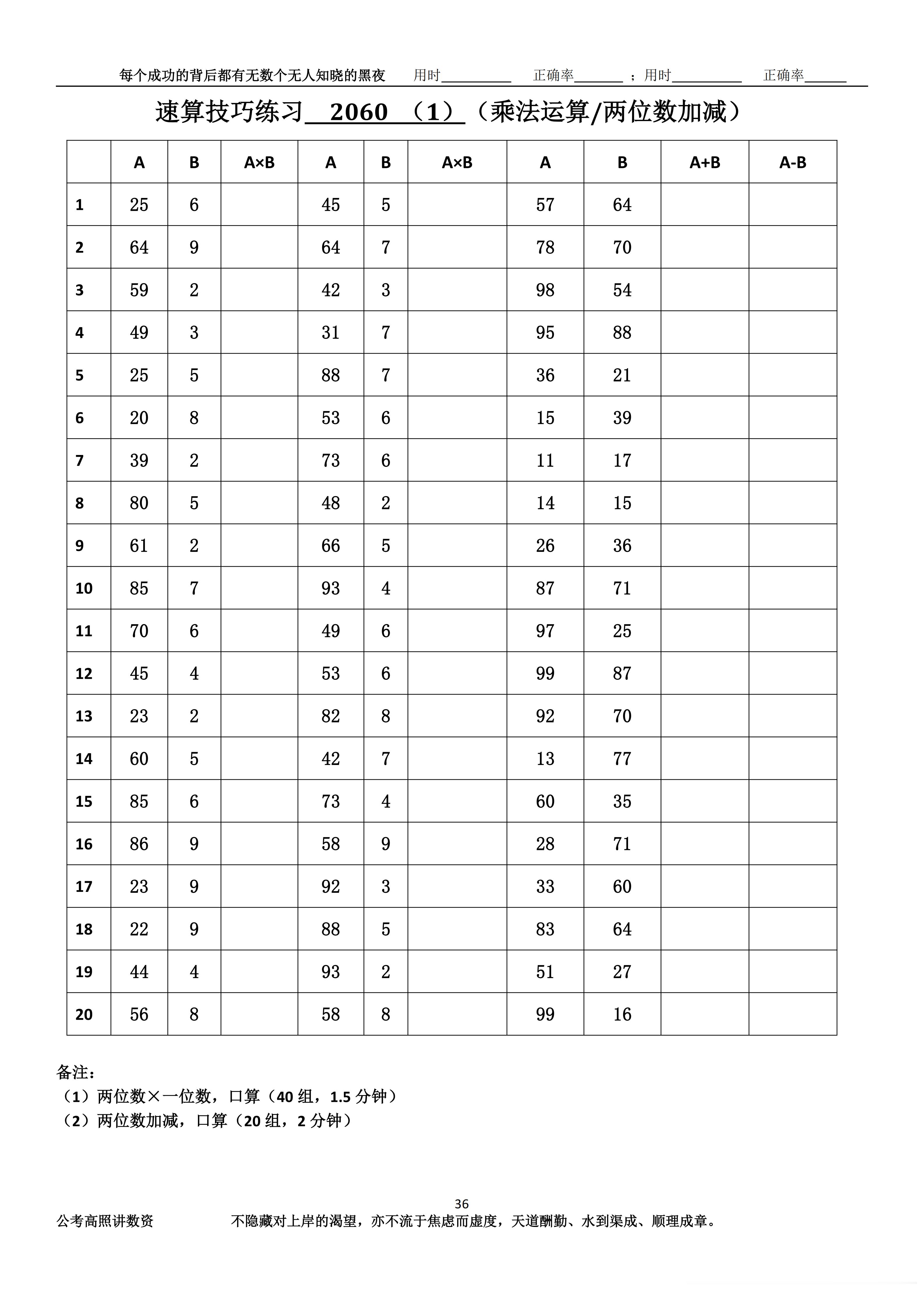 跟着高照练速算决战公考 速算练习2060相信自己,努力学习。速算链接汇总:网页