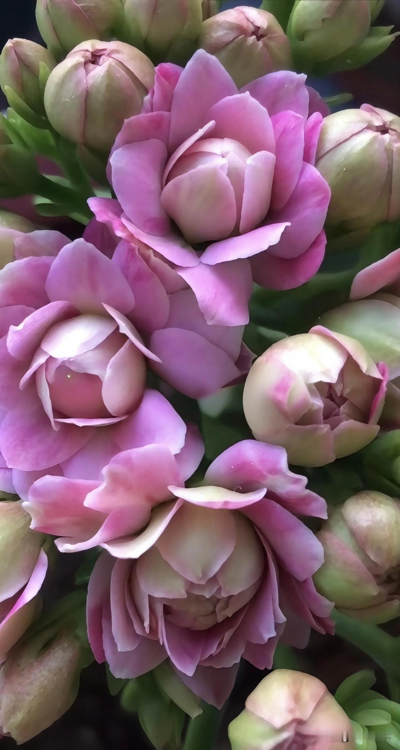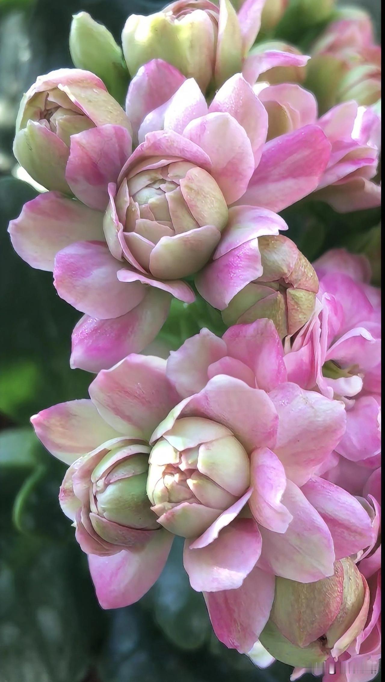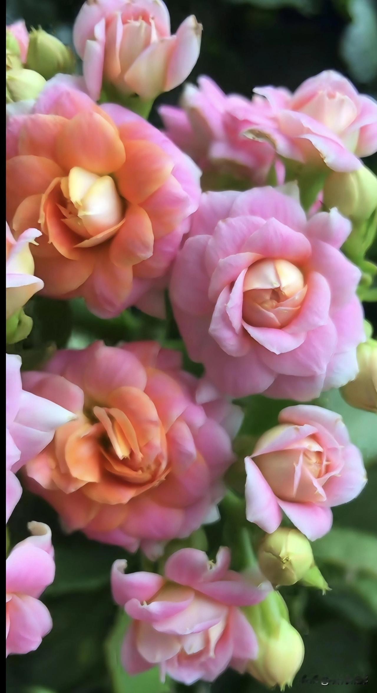长寿花开展风采, 朵朵绽放缤纷美, 绿叶陪衬花朵艳, 寓意美好人人爱, 春光之下展妩媚, 喜气盈满美人间!