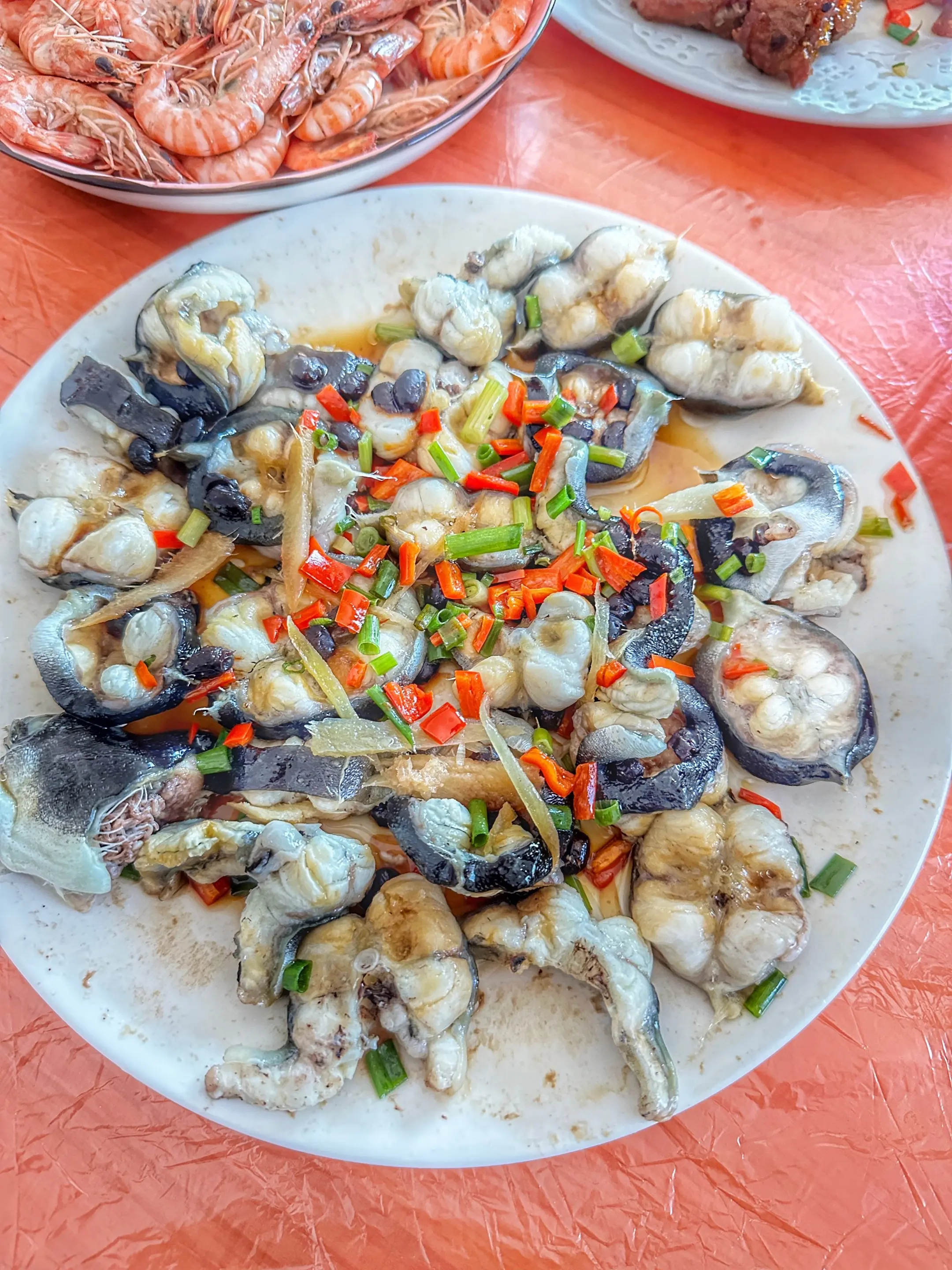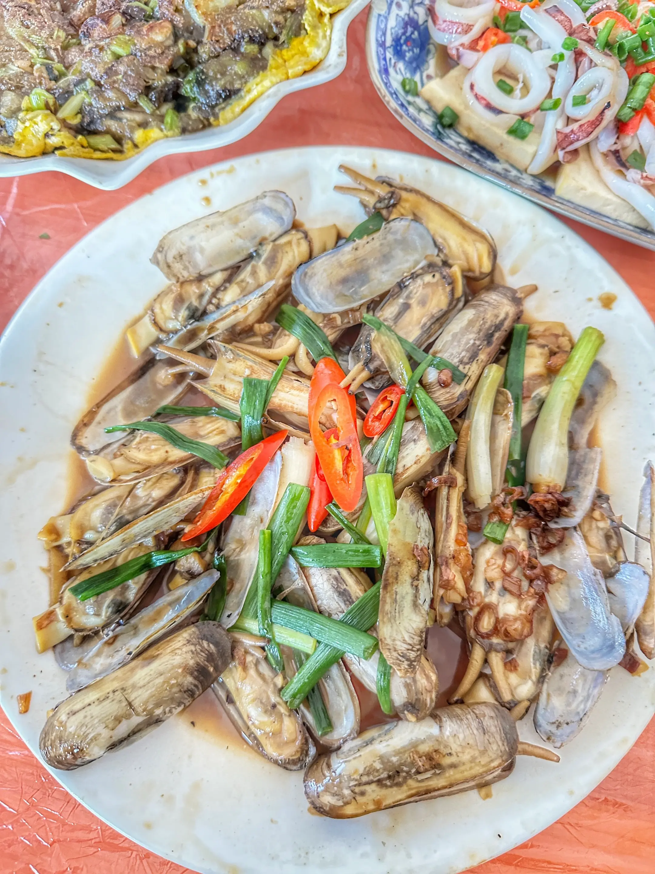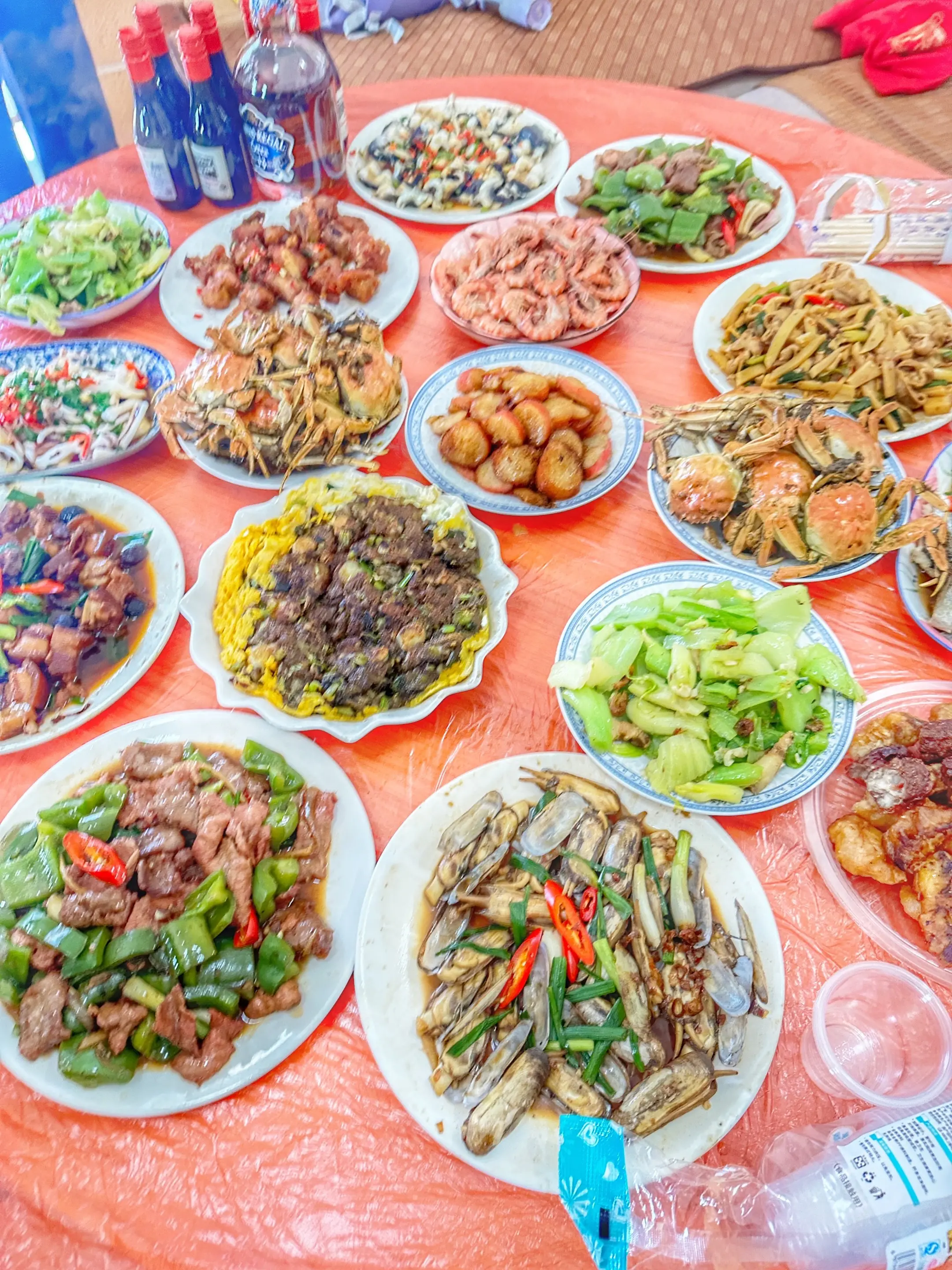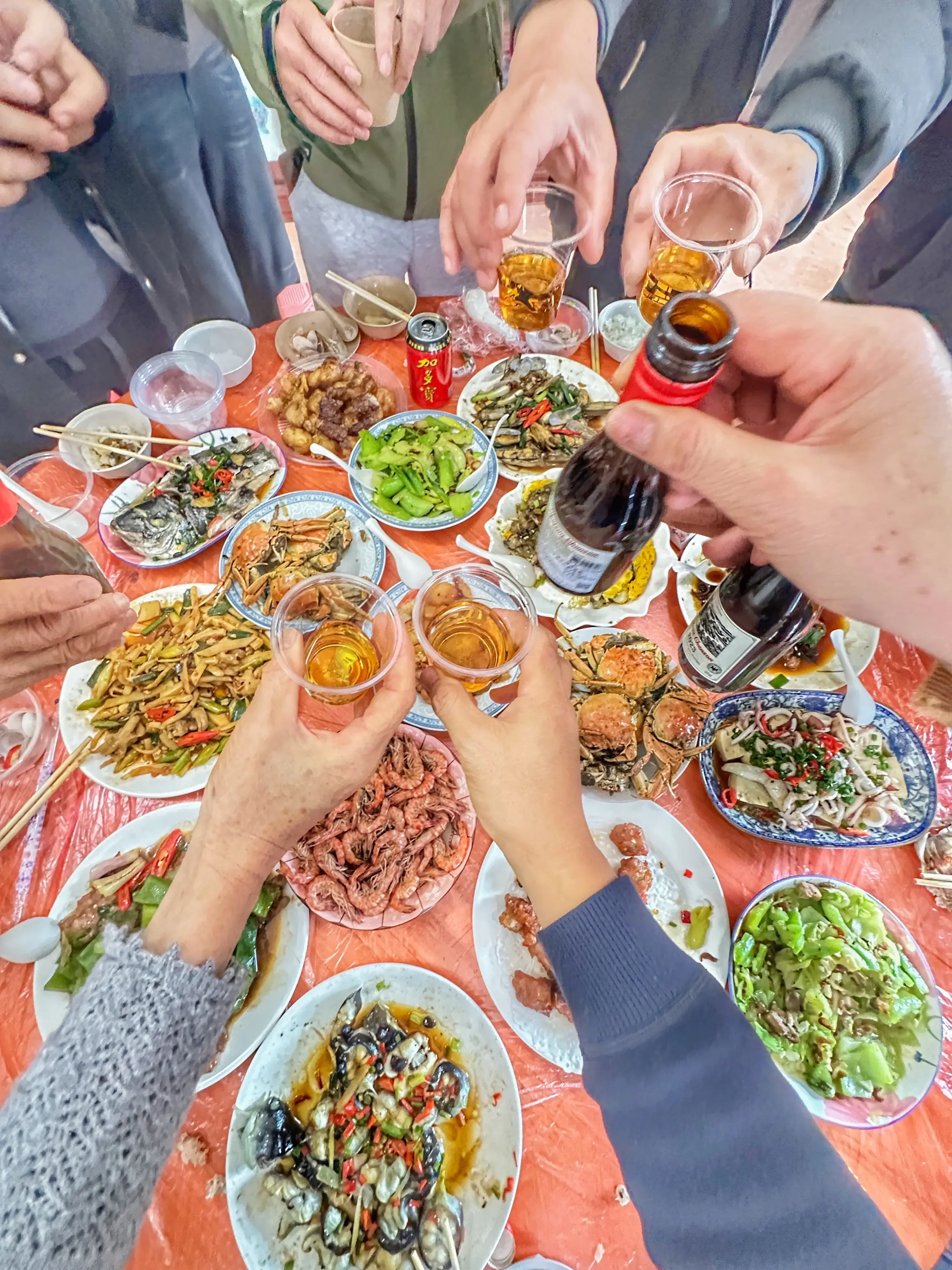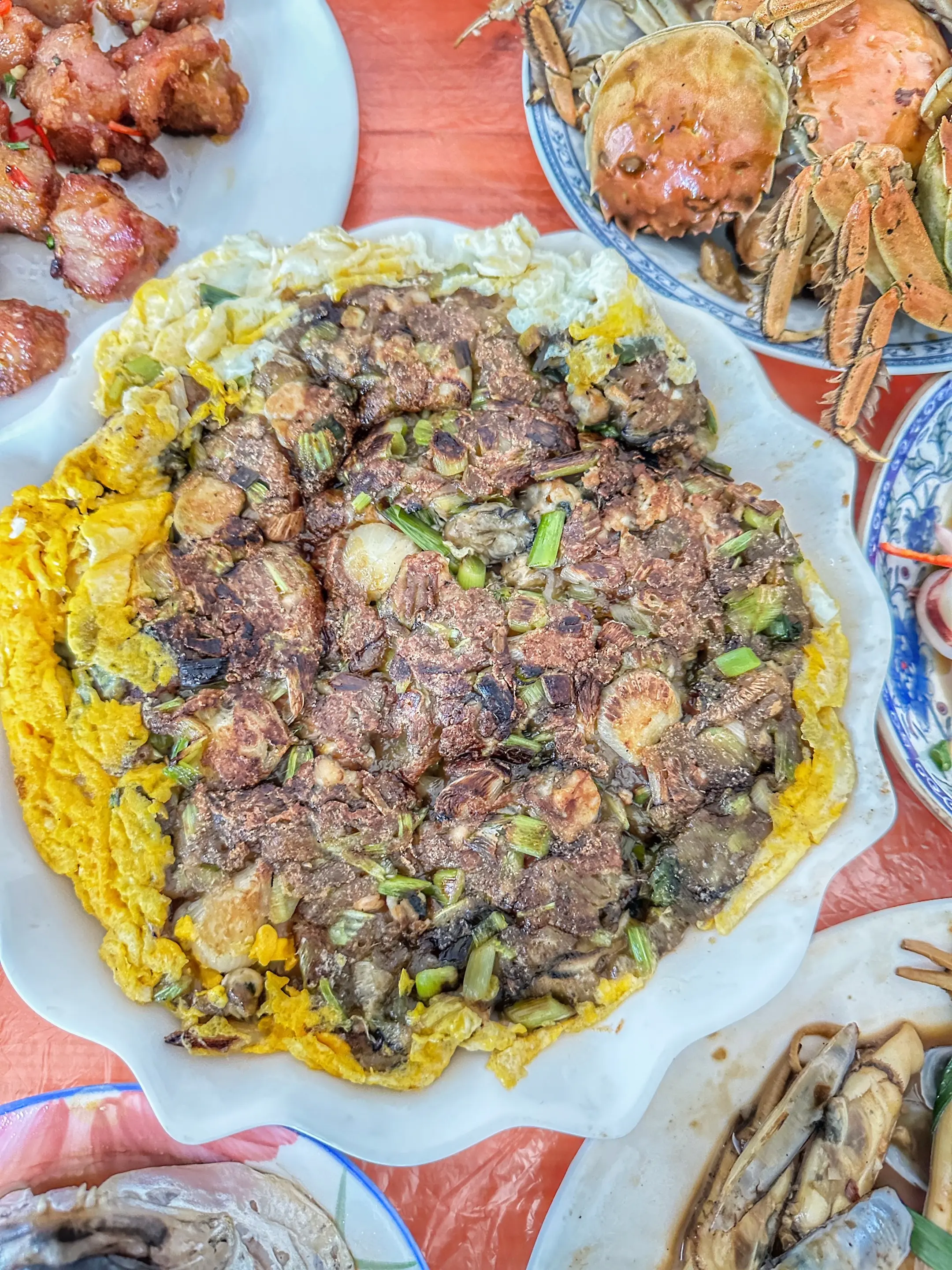 海蛎是鲜的、三层肉是香的,裹着油润的包菜和胡萝卜丝,是甜的…交融在柴火灶的旺火里。出锅时,盛在那只凹凸有致印着岁月痕迹的铝碗里,再覆上一块喜庆的红饭罩。一出场便被所有人给盯上了…