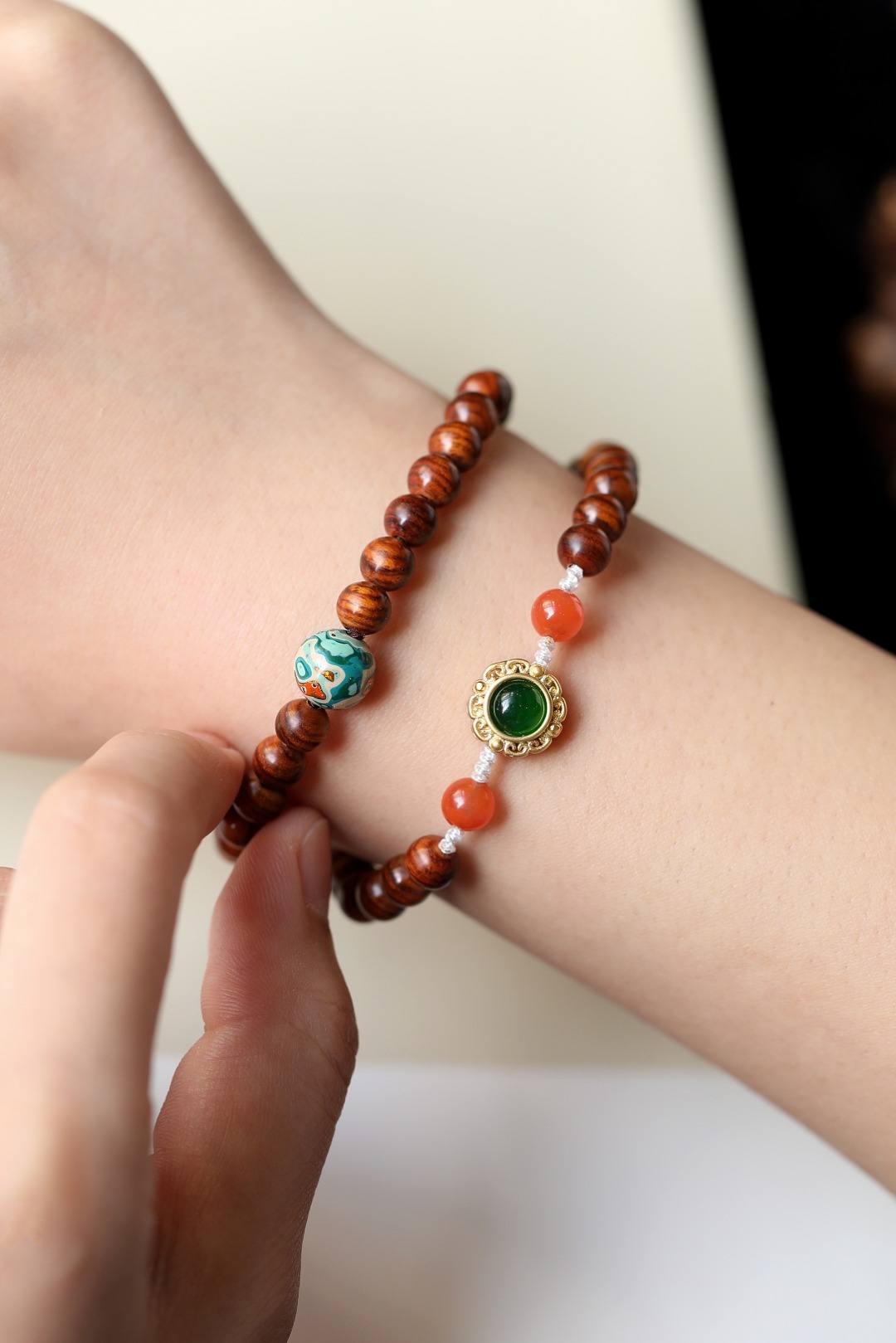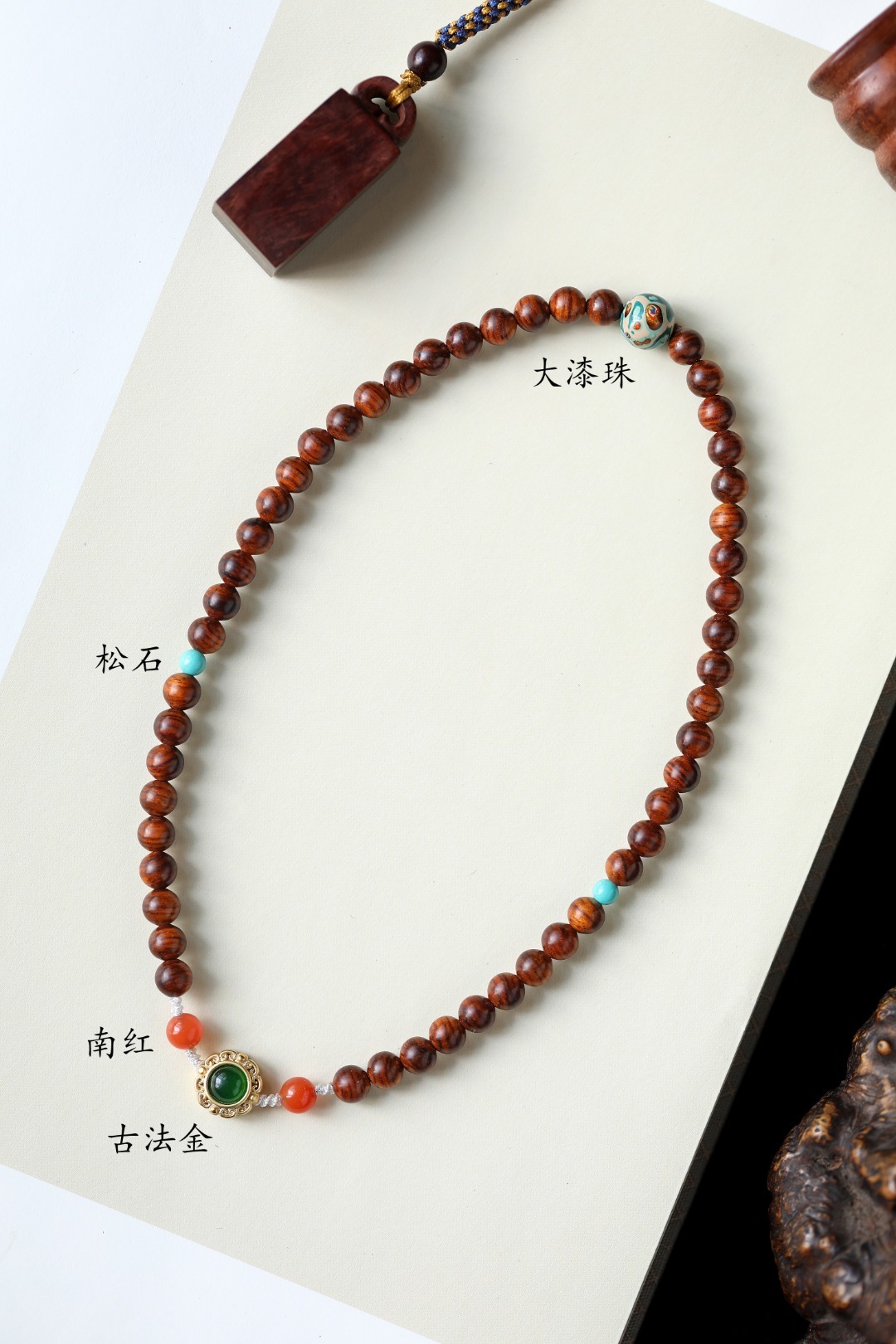 配件:松石、南红、大漆珠、古法金