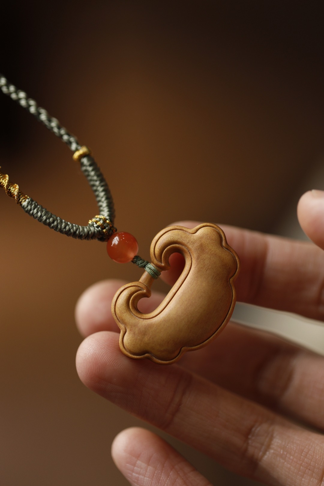 清韵淡雅的老山檀香,以如意为形,一面浮雕青莲,有着祥和如意之韵,夏季佩戴尤其风情,迷人。