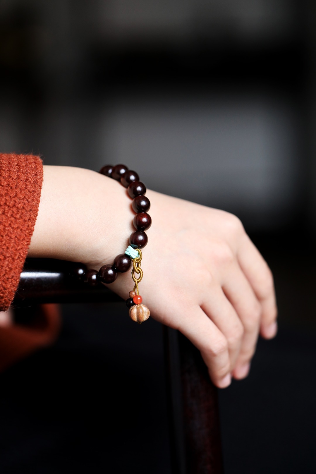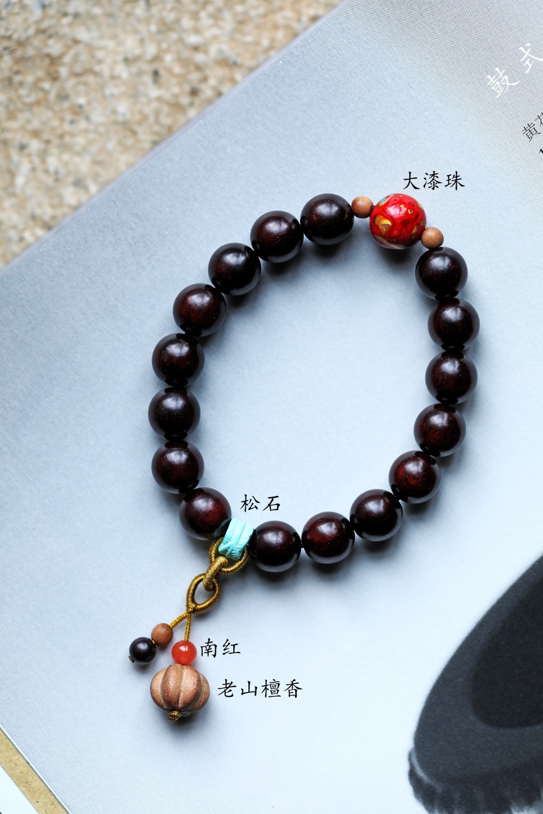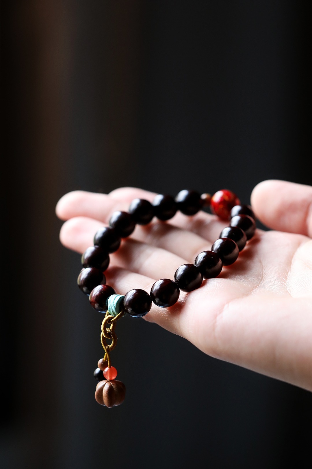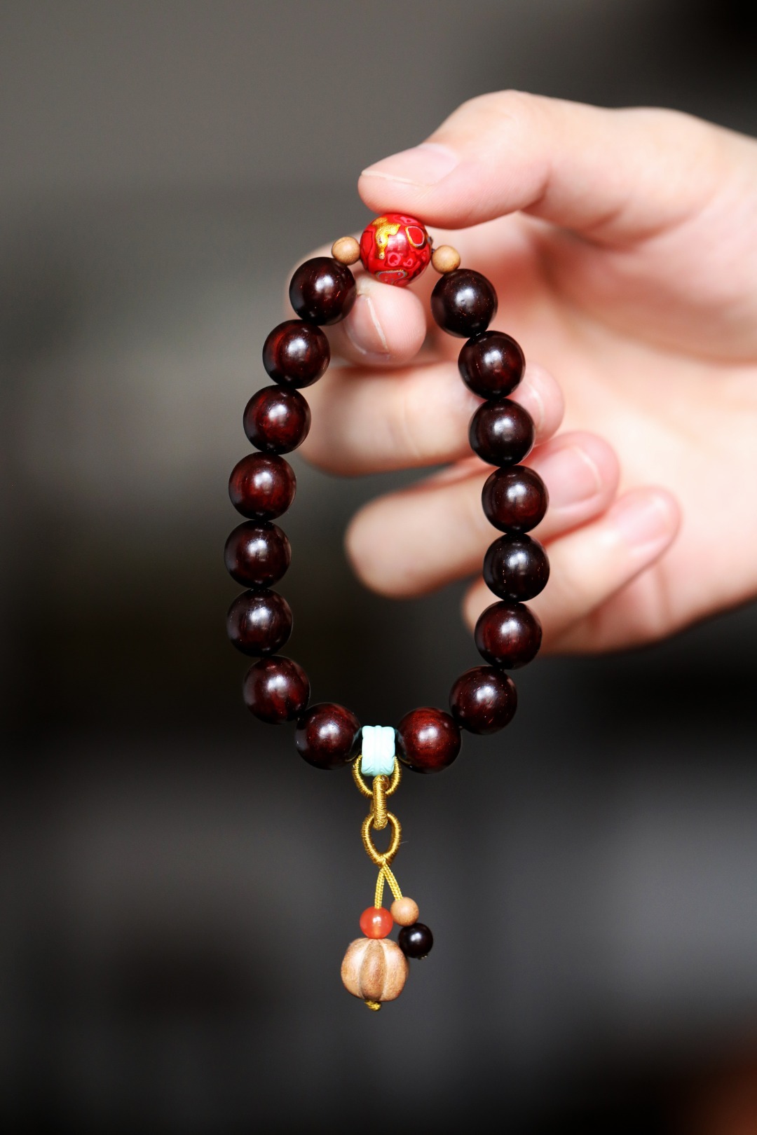 配饰:老山檀香、南红、大漆珠、松石 小叶紫檀原创【珍凝】10mm16颗 手串 国风配饰