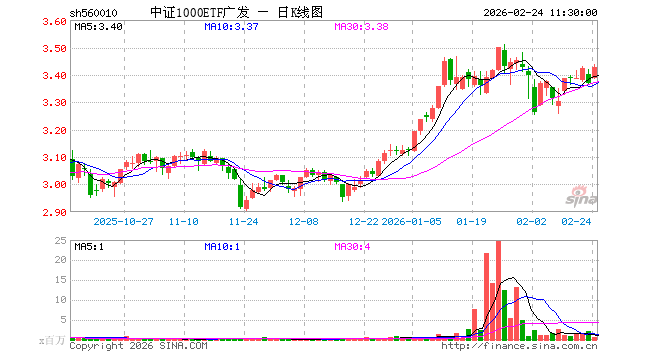 2月24日,截止午间收盘,中证1000ETF广发(560010)涨1.69%,报3.426元,成交额1.76亿元。中证1000ETF广发(560010)重仓股方面,香农芯创截止午盘涨5.25%,东芯股份跌0.64%,源杰科技涨6.69%,剑桥科技涨4.42%,欧菲光涨1.02%,长芯博创涨7.41%,淳中科技涨3.56%,德明利涨3.17%,永鼎股份涨6.55%,赛微电子涨5.45%。