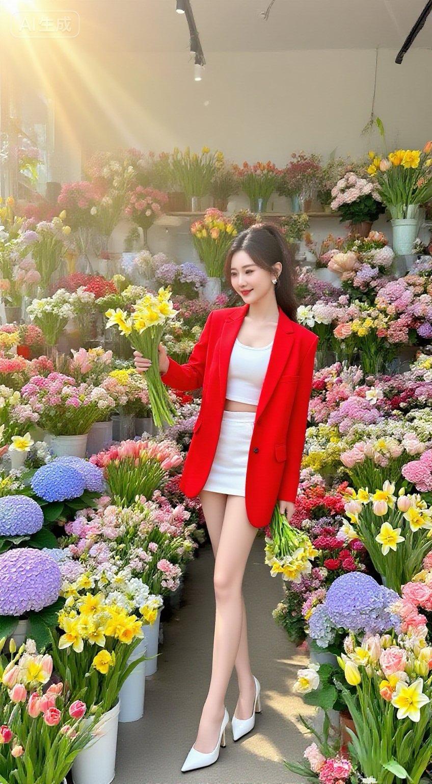 她站在花海中,笑得真灿烂!