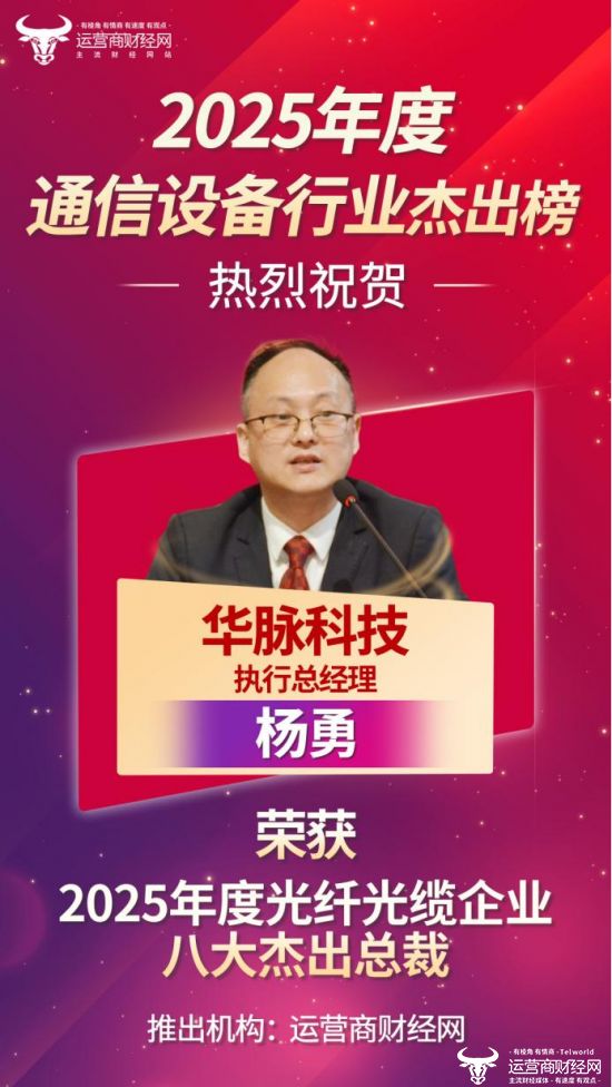 近日,运营商财经网独家打造“2025年度光纤光缆企业八大杰出总裁”榜单正式公布,华脉科技执行总经理杨勇上榜。