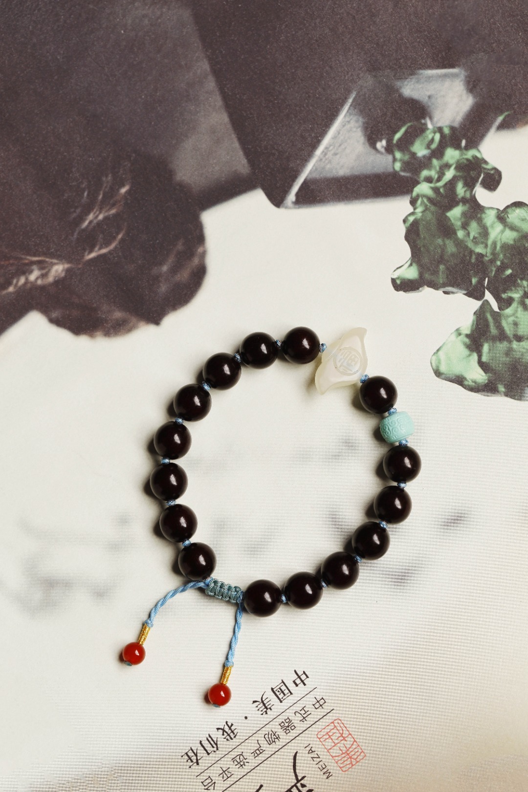配件:南红、松石、和田玉 紫檀 原创【云茵】手串 10mm 15颗 手串