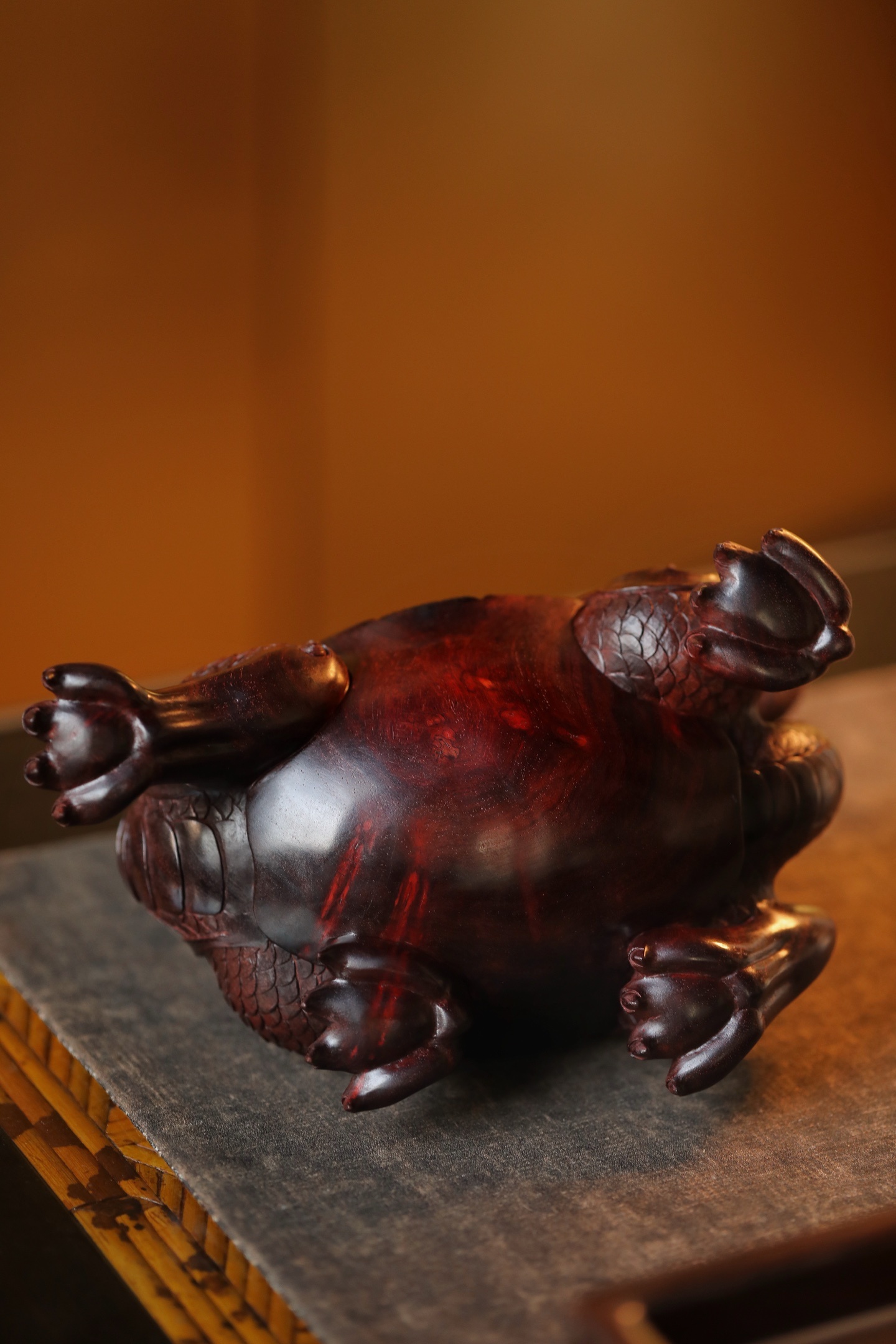 小叶紫檀 | 龙龟 “荣归”去芯二膘料雕刻,刀法质朴有味,底色通透明亮,线条流畅