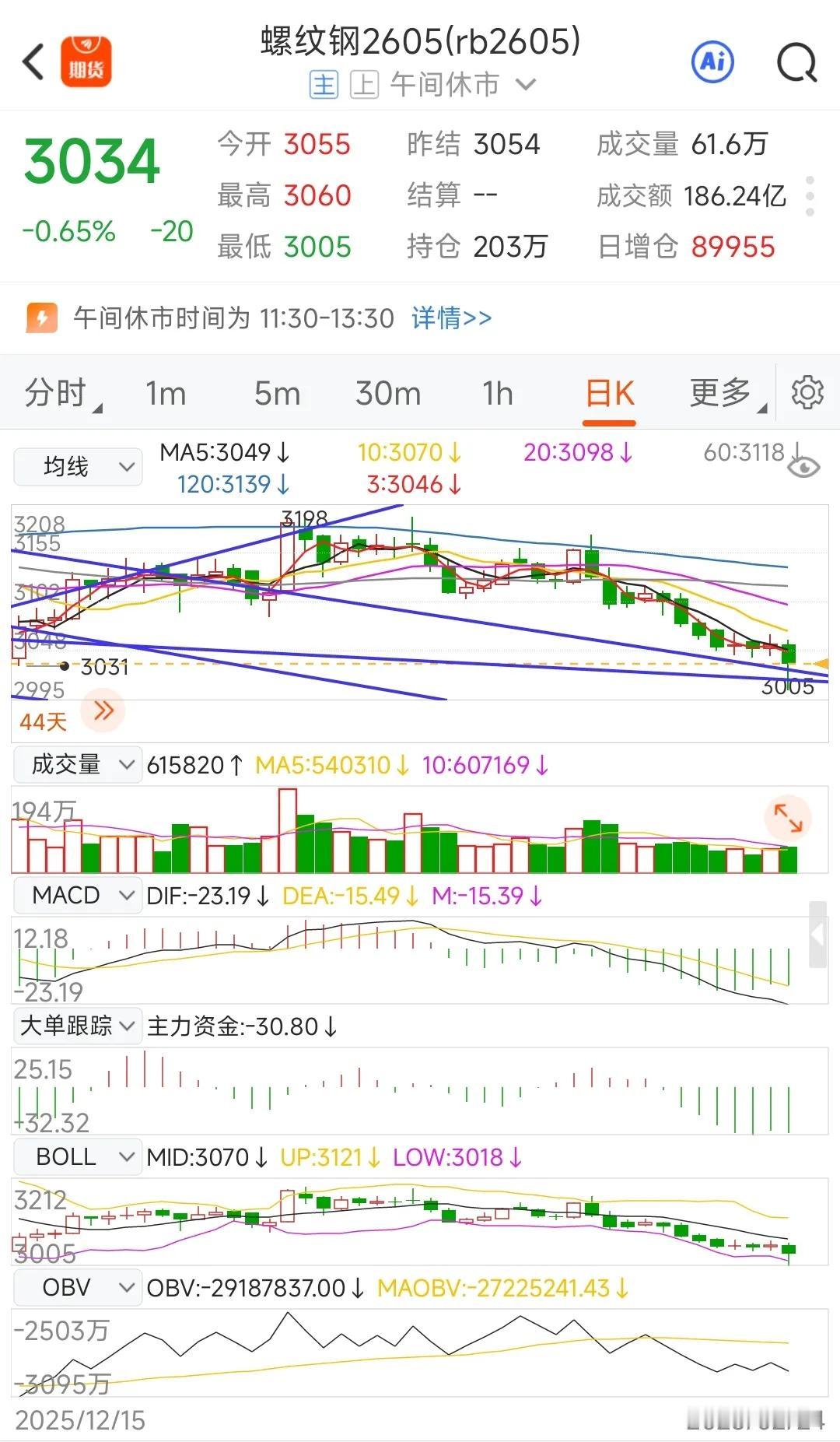 这是年前画的图,刚好早上触底反弹,严格来讲一般两条趋势线交叉左右才是最小阻力位,如果2月数据不及预期应该还会下探。技术分析只能作为参考,要么小仓位,要么严格止损止盈,纪律加符合自己的经过验证过的交易逻辑,并持续更新,才是盈利的关键。承受不住压力,要么拿不住,要么不断割肉。螺纹钢我查了下,生产成本2850左右,目前节后复工+3~6月需求旺季,虽然大环境弱,不及预期,但往年多半1~6月先抑后仰 加上保交楼和反内卷托底,基建基础还是有的,6月至少有上3100以上的预期吧?那资金多可以在2850~3000逐步建仓,只是时间会比较久,快进快出和资金量小的只能做几分钟和几小时波段市场周期分析