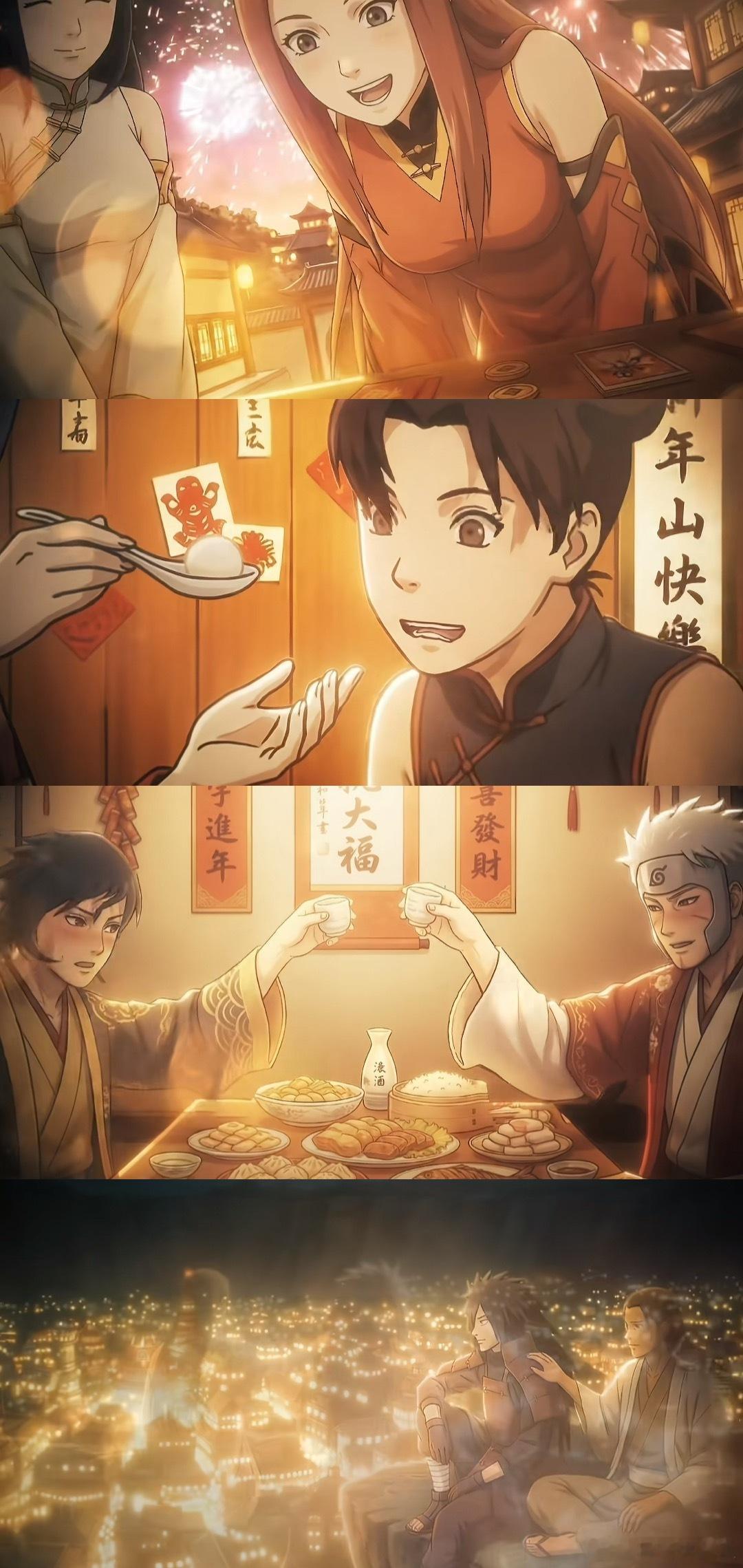 今年春节把次元壁打破了起猛了二次元角色也过上年了 咒术师的烟花混着你家鞭炮响,哆啦A梦的年货堆成两个世界的山。举杯时,武士的酒和你的可乐碰出了火花~