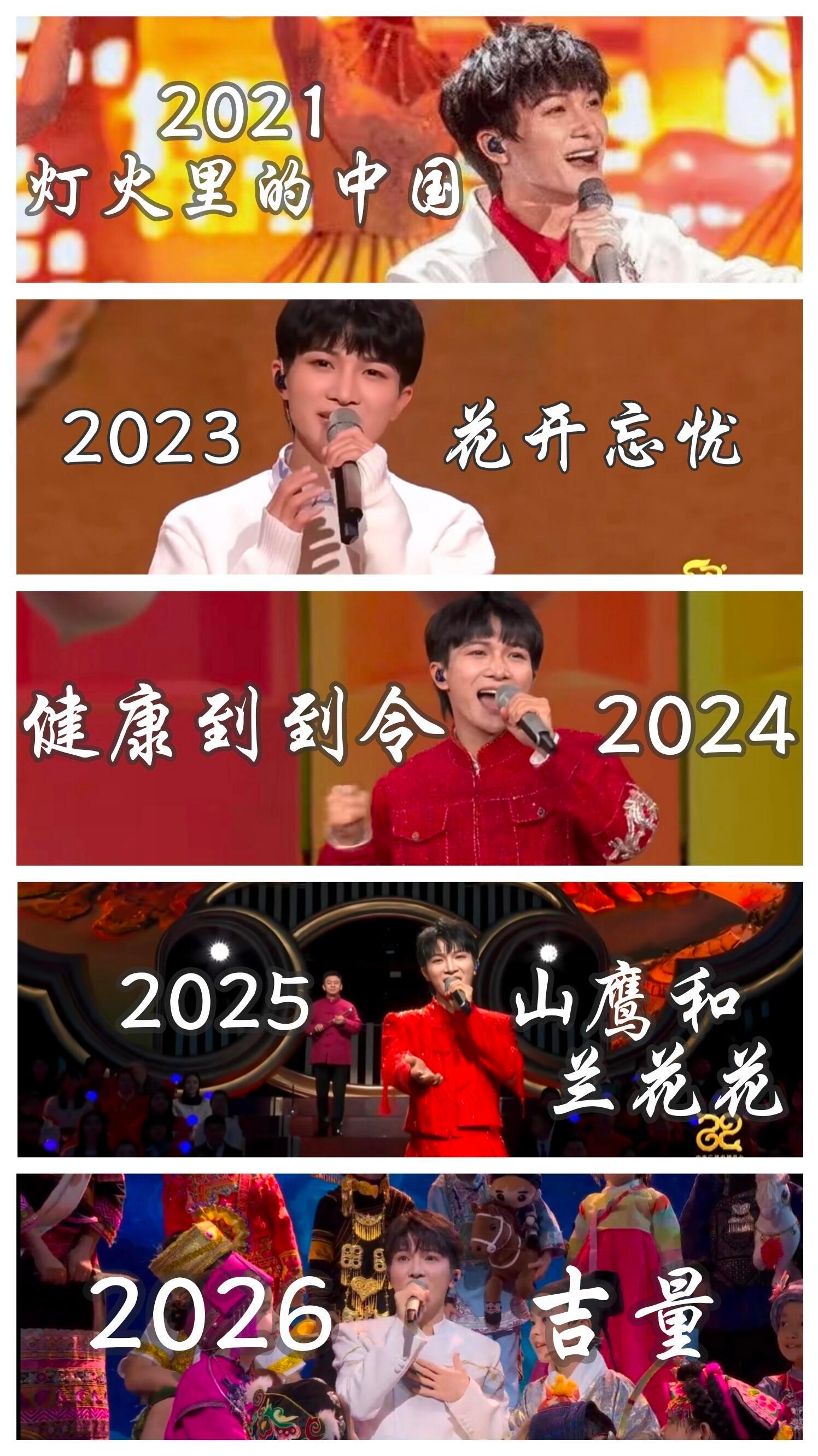 周深六年五次登上春晚舞台 谁不为周深的春晚表现动容?六年五次登舞台,三次独唱、两次收视第一,《灯火里的中国》到《吉量》,从青涩到从容,新华社点赞的青年艺术家,用实力赢得了所有人的喜爱!