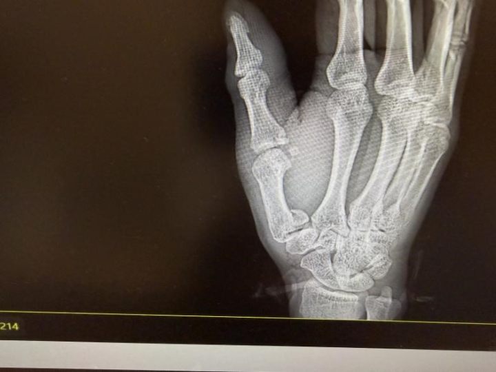 拍片结果印证了刘医生的判断,李先生右手第一掌骨、第一近节指骨基底部都骨折了。刘医生为他的伤口做了清创缝合,随后骨科医生也及时介入,做了临时石膏固定,后续李先生还得住院择期手术。