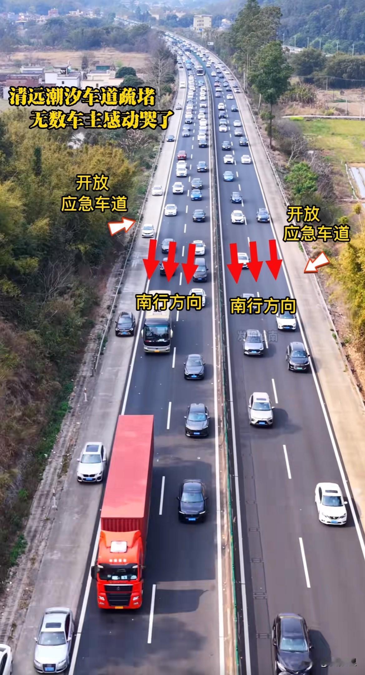 清远这一举措让无数车主感动哭了!高速潮汐车道变成现实。作为连接珠三角北上的关键节点,清远逢节必堵,但这次的返粤,清远大胆并果断的采取了一个开创性的措施,高速采用潮汐车道!将高速路全部临时改成南下,并用警车开道借道而行,同时,也开放了应急车道,双管直下,迅速疏通了南下的车流。这个春节必须为清远点赞!这种大胆的举措,值得全国学习,尤其是在节假日中。