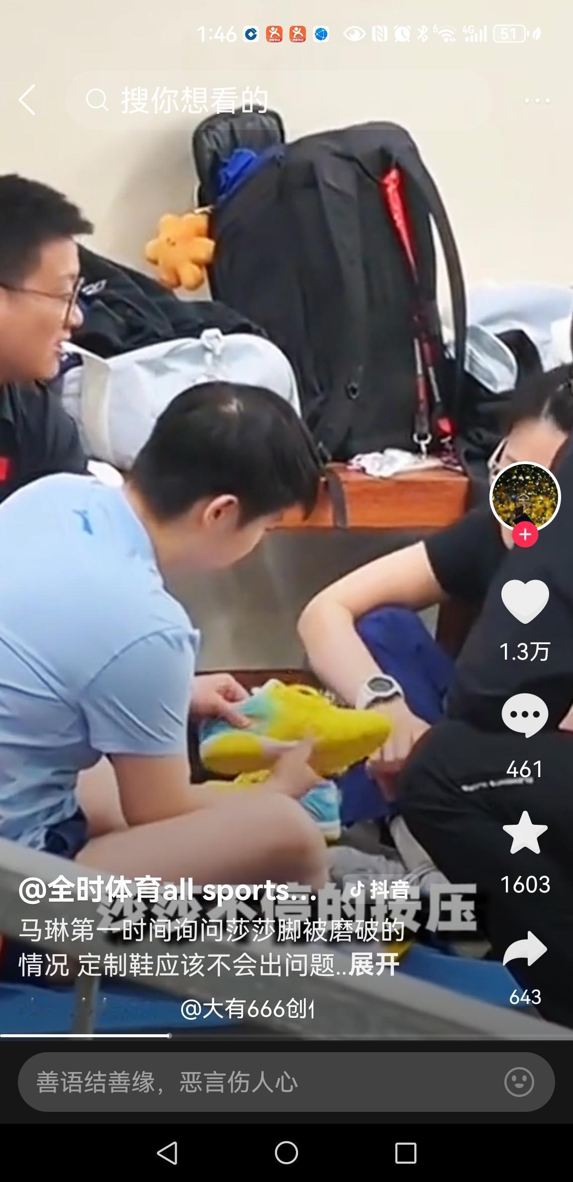 看到莎莎穿拖鞋上下训,好心疼! 新加坡大满贯,莎莎的定制鞋冲上热搜 网友热议,莎莎的定制鞋出了状况,磨破了脚。 无奈,莎莎只能上下训,穿着拖鞋。 莎莎的鞋,那是她征战赛场,为国争光的战靴。 这品牌可是国内运动品牌的顶流,况且是国际巨星莎莎的战靴,怎么犯下这样低级的错误! 普通消费者线上线下买双鞋,也不会出现这样的问题! 鞋子不合脚,只有脚知道。 祈祷,磨脚的鞋子,不会对莎莎夺冠造成太大的困扰。🙏