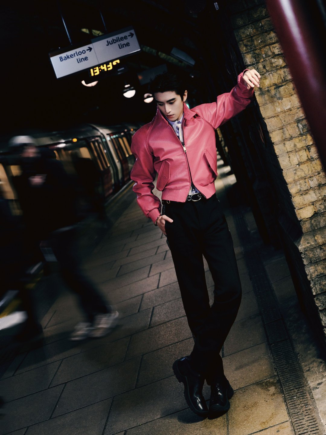 张康乐粉皮衣造型张康乐在2026年伦敦时装周Burberry大秀上身穿一袭高饱和