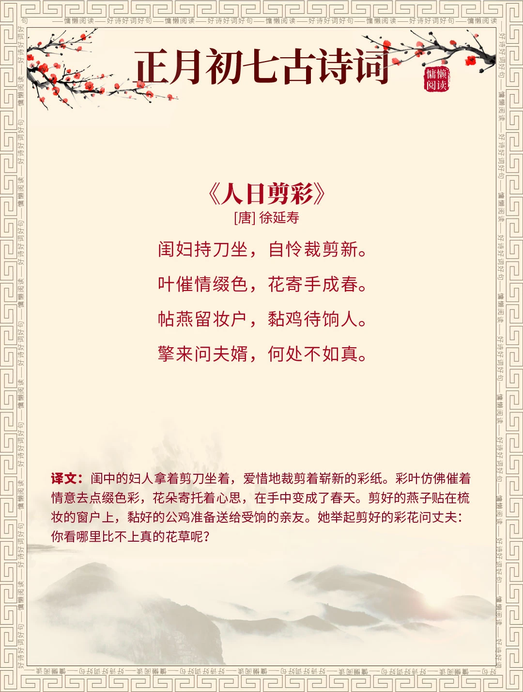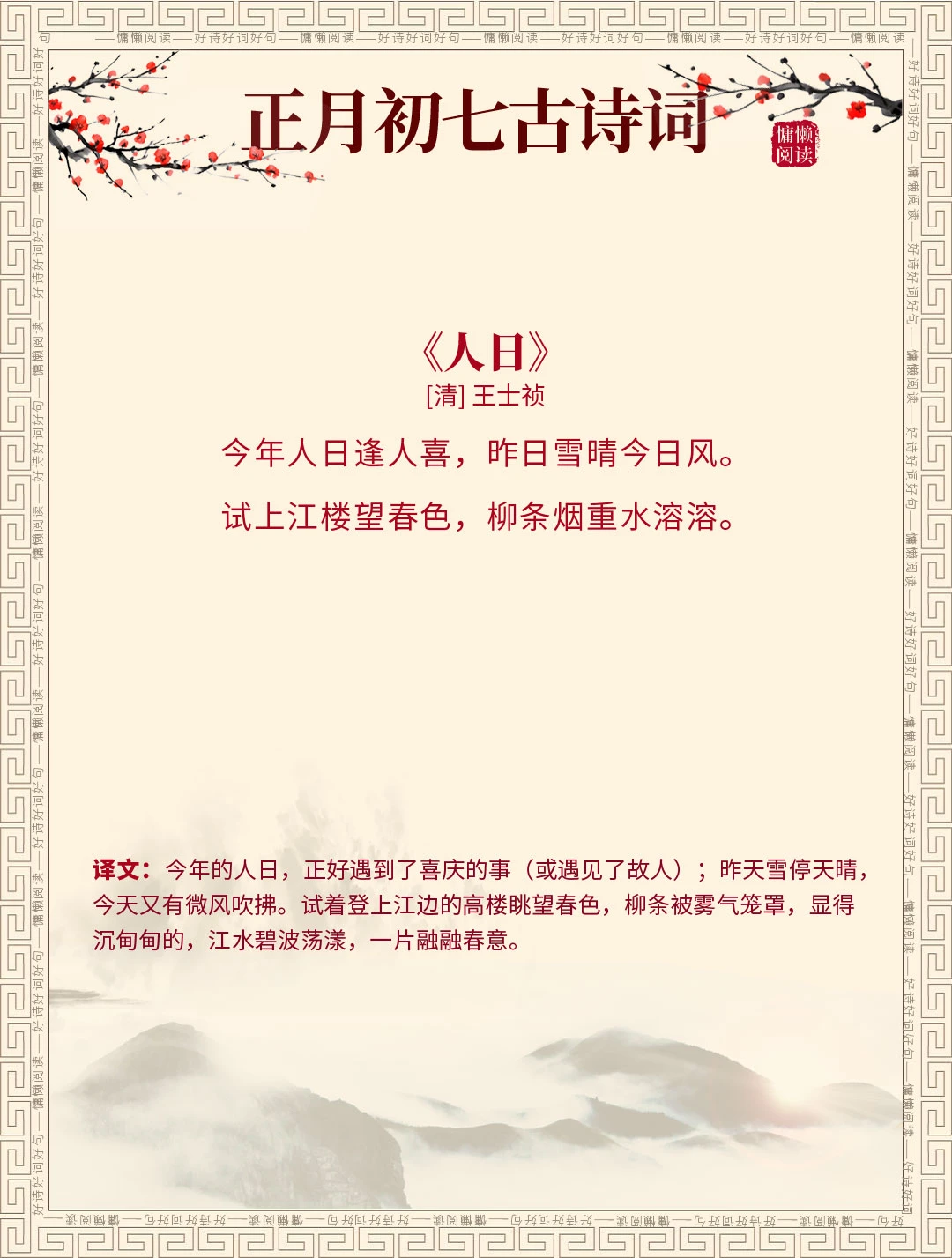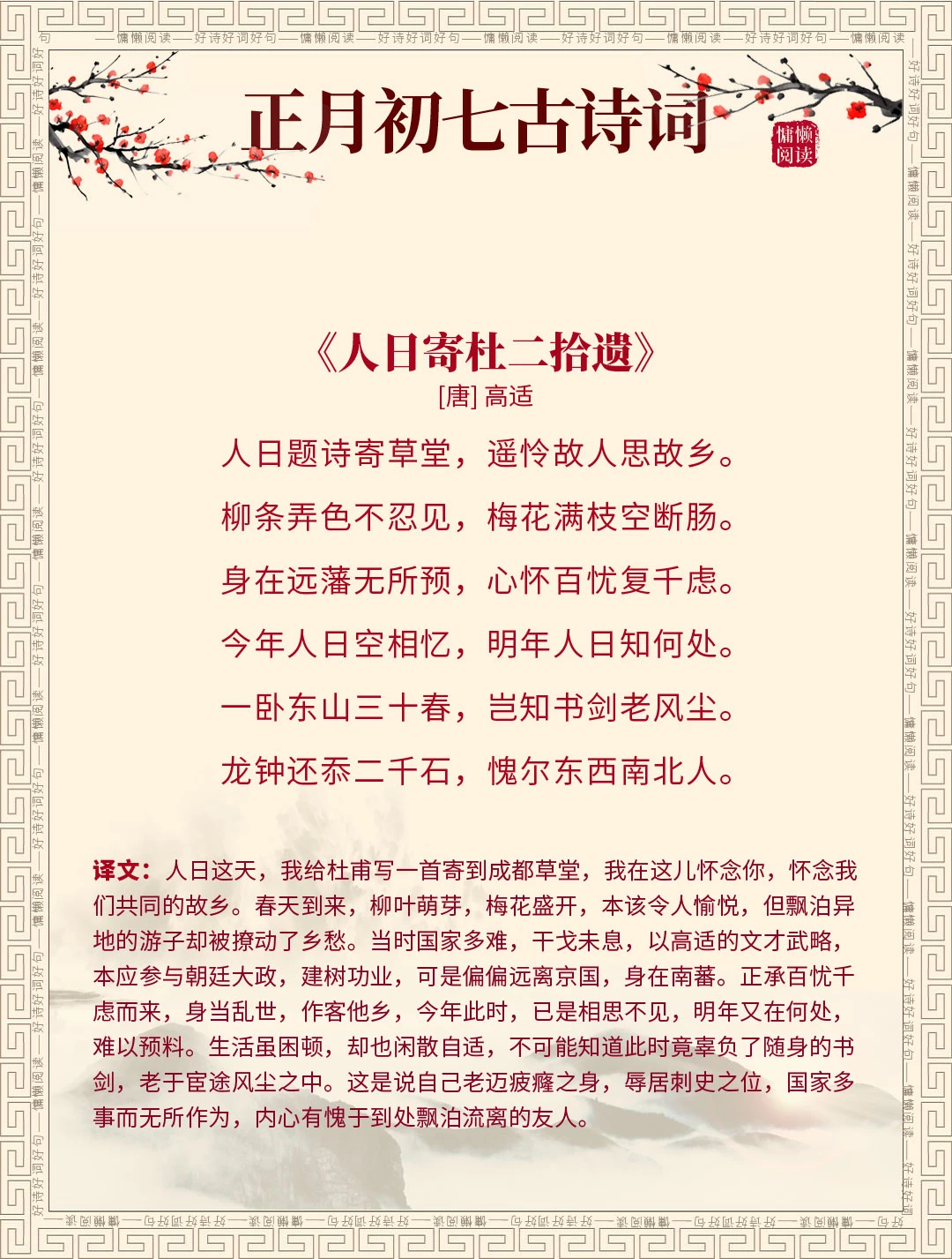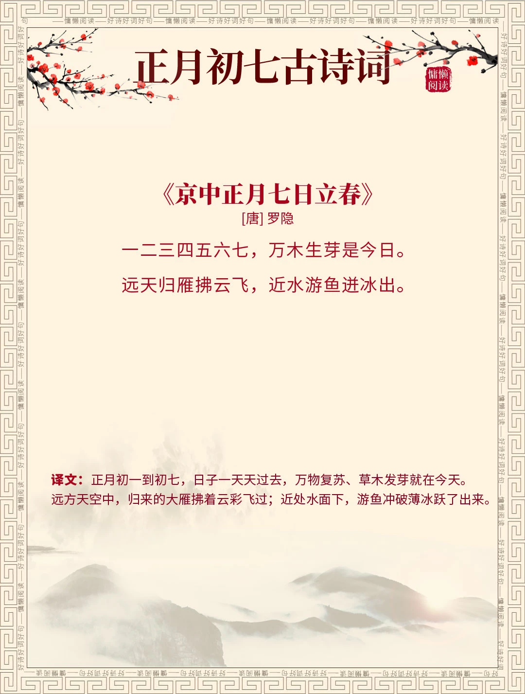 正月初七 古诗词 古诗词赏析 诗词里的春天 每天谈一首古诗词 我是春节主理人