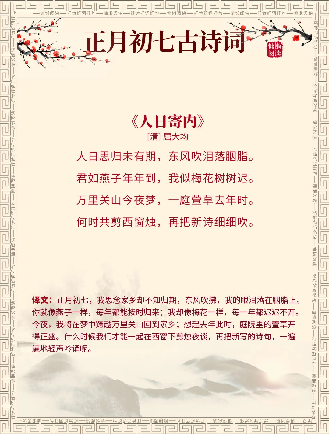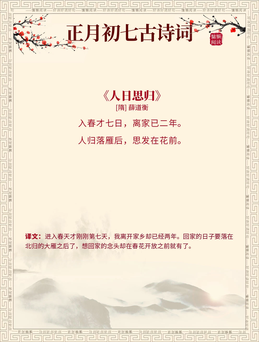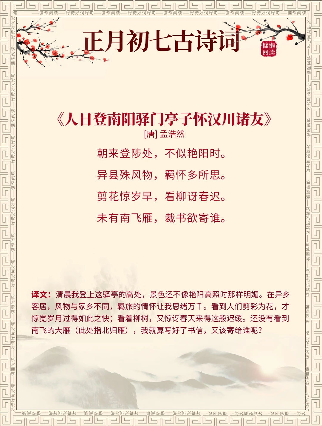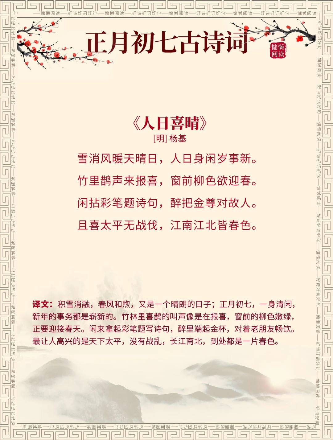 正月初七 古诗词 古诗词赏析 诗词里的春天 每天谈一首古诗词 我是春节主理人