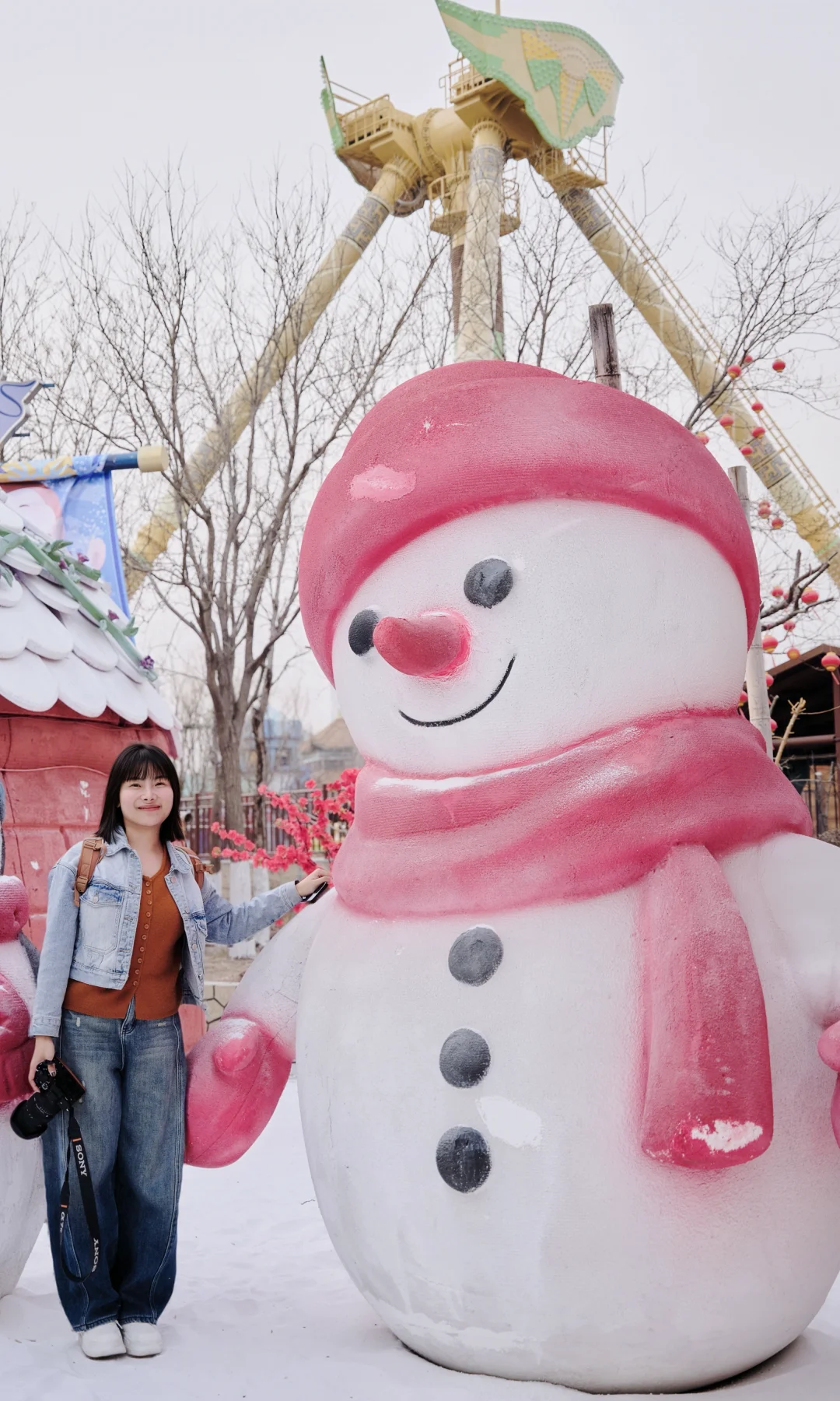 6️⃣冰雪城堡拍照可以选在城堡两侧,隔着湖的区域,人离镜头近一点,城堡会拍得更全也更好看,晚上天快黑的时候拍带灯光效果的空镜也很绝