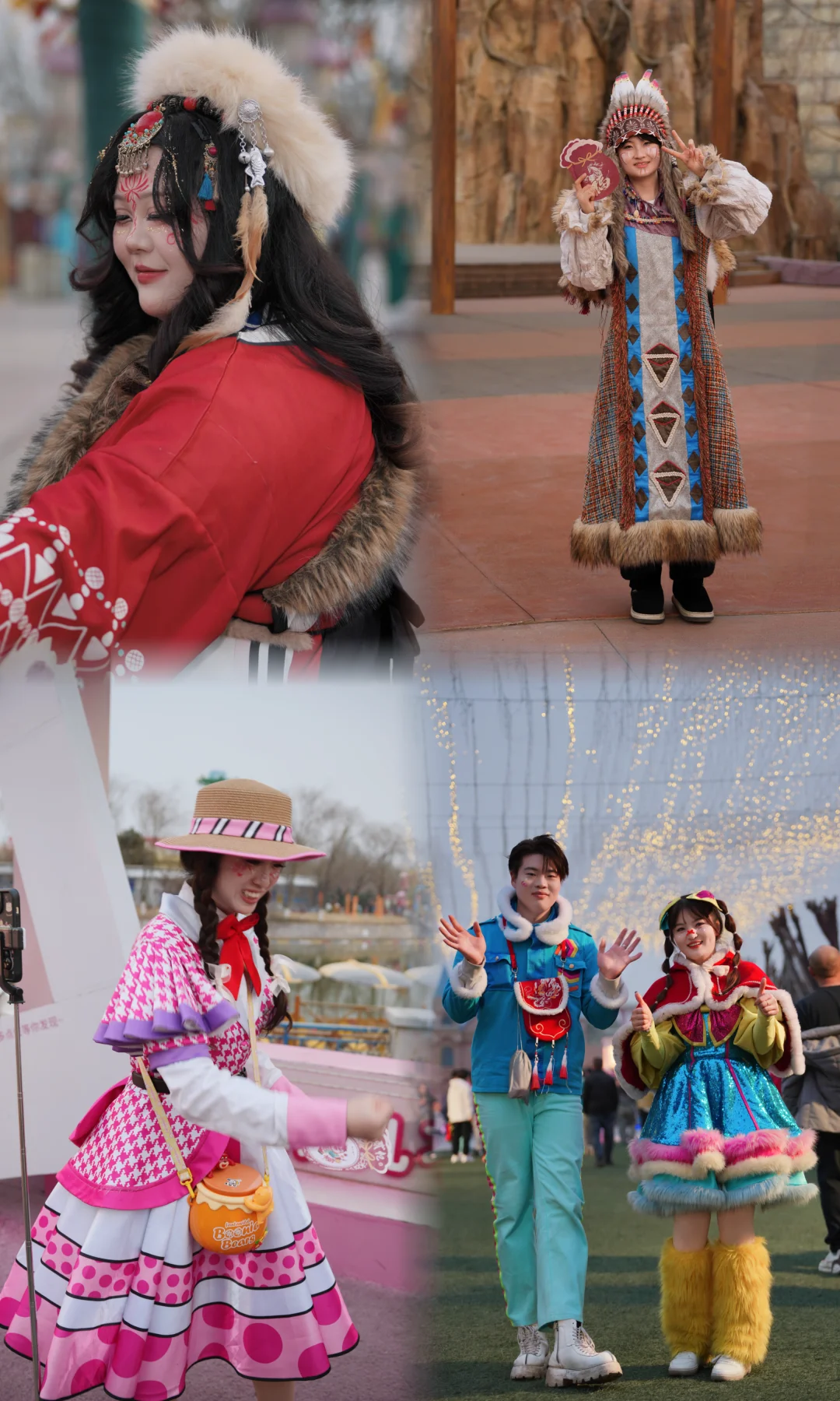 4️⃣晚上的篝火晚会和打铁花是很多人最期待的节目,其实全天都有表演,可以关注节目表,比如【马上哏儿市】的【东方神韵】舞台,一进门喷泉广场后边,也就是城堡前方的主舞台,不定时都有演出