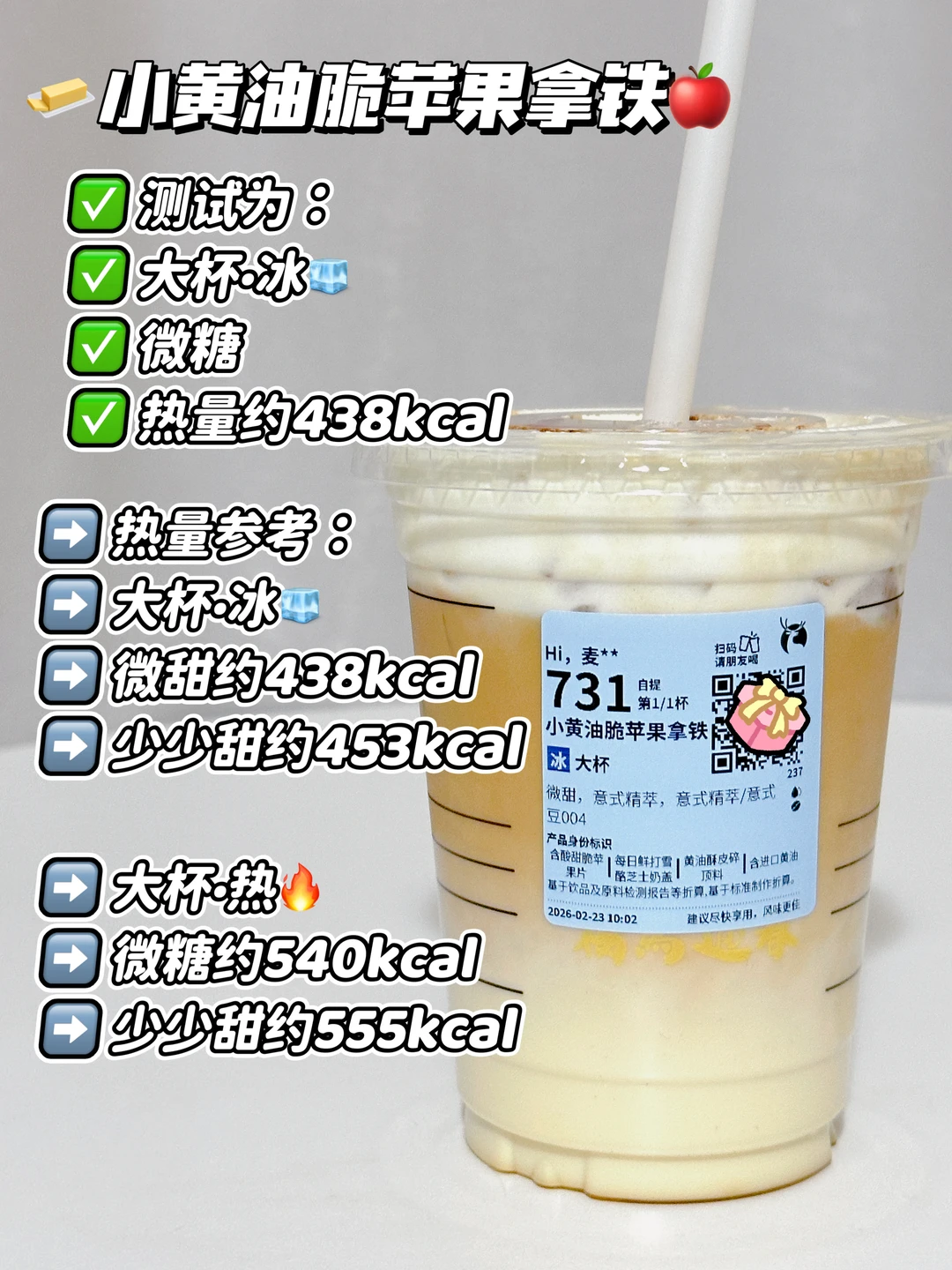 测试为:大杯·冰🧊微糖 热量约438kcal