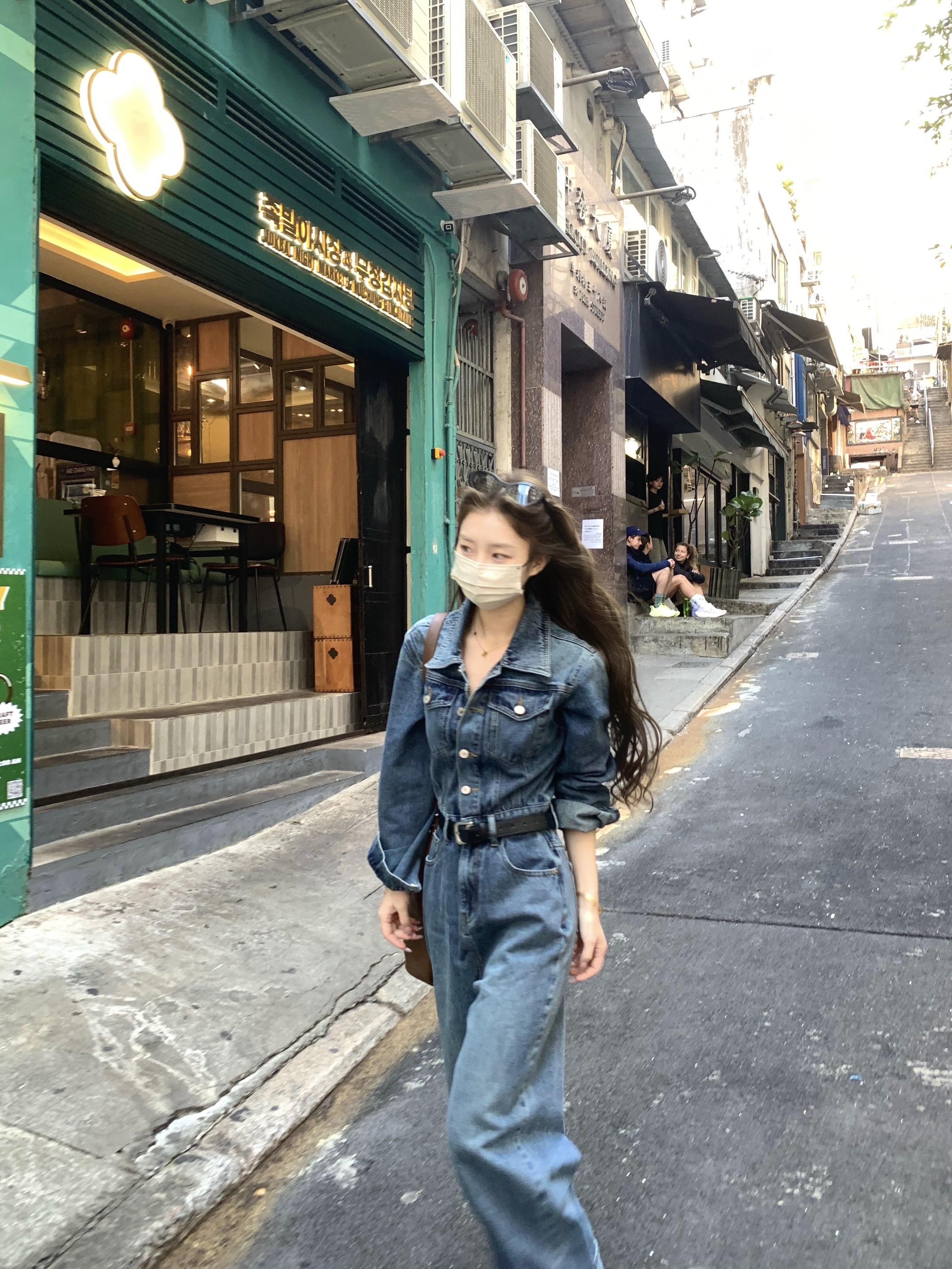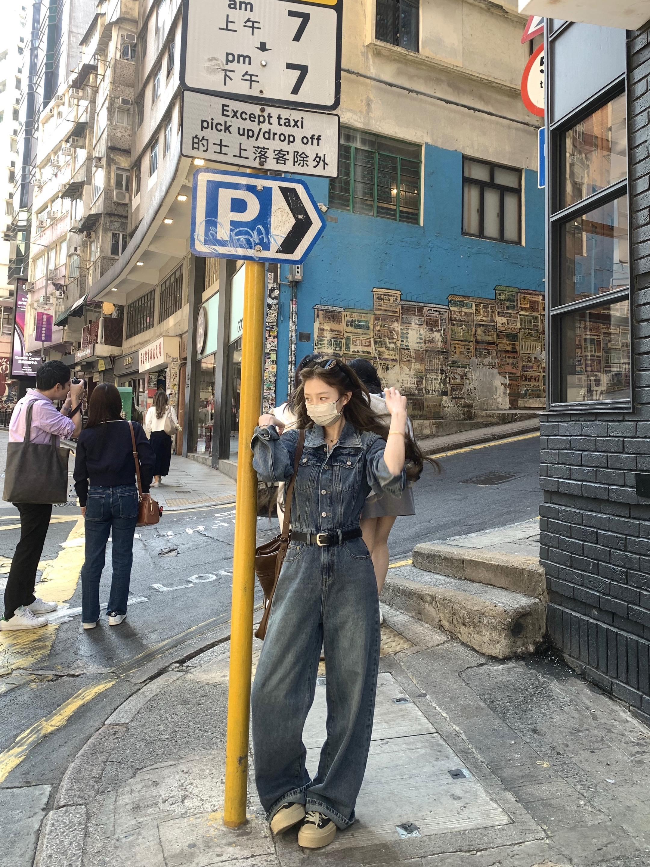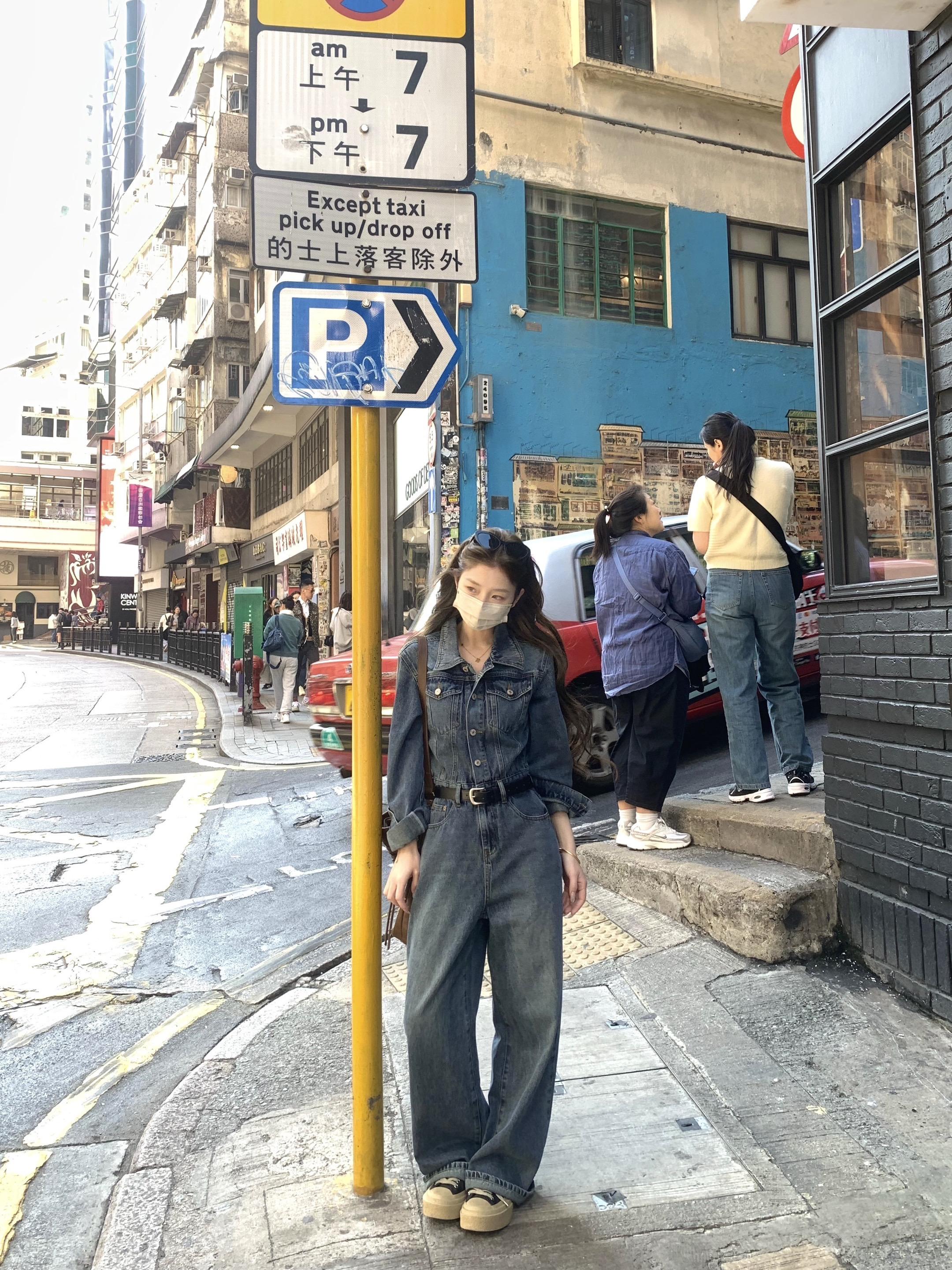 一本正经游客照 穿搭 牛仔裤 复古穿搭 香港