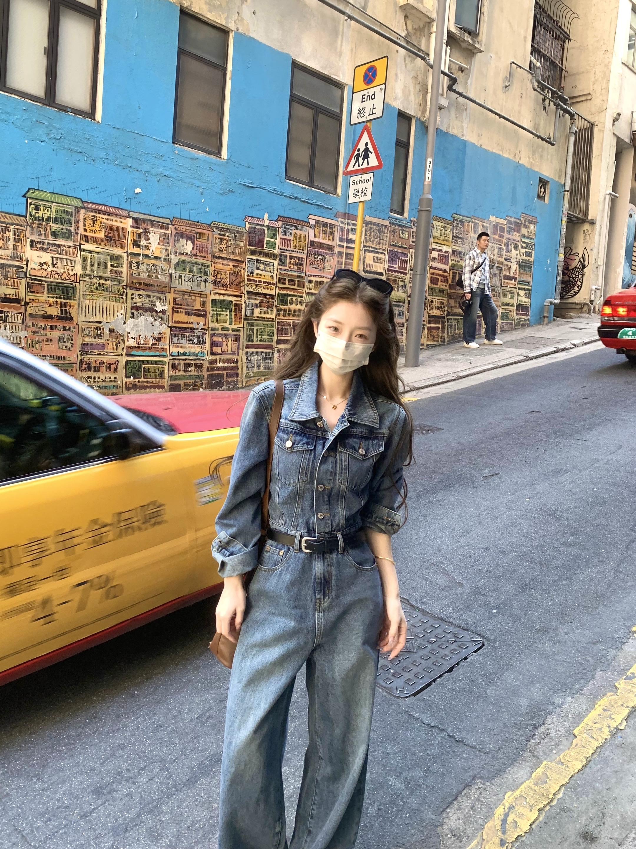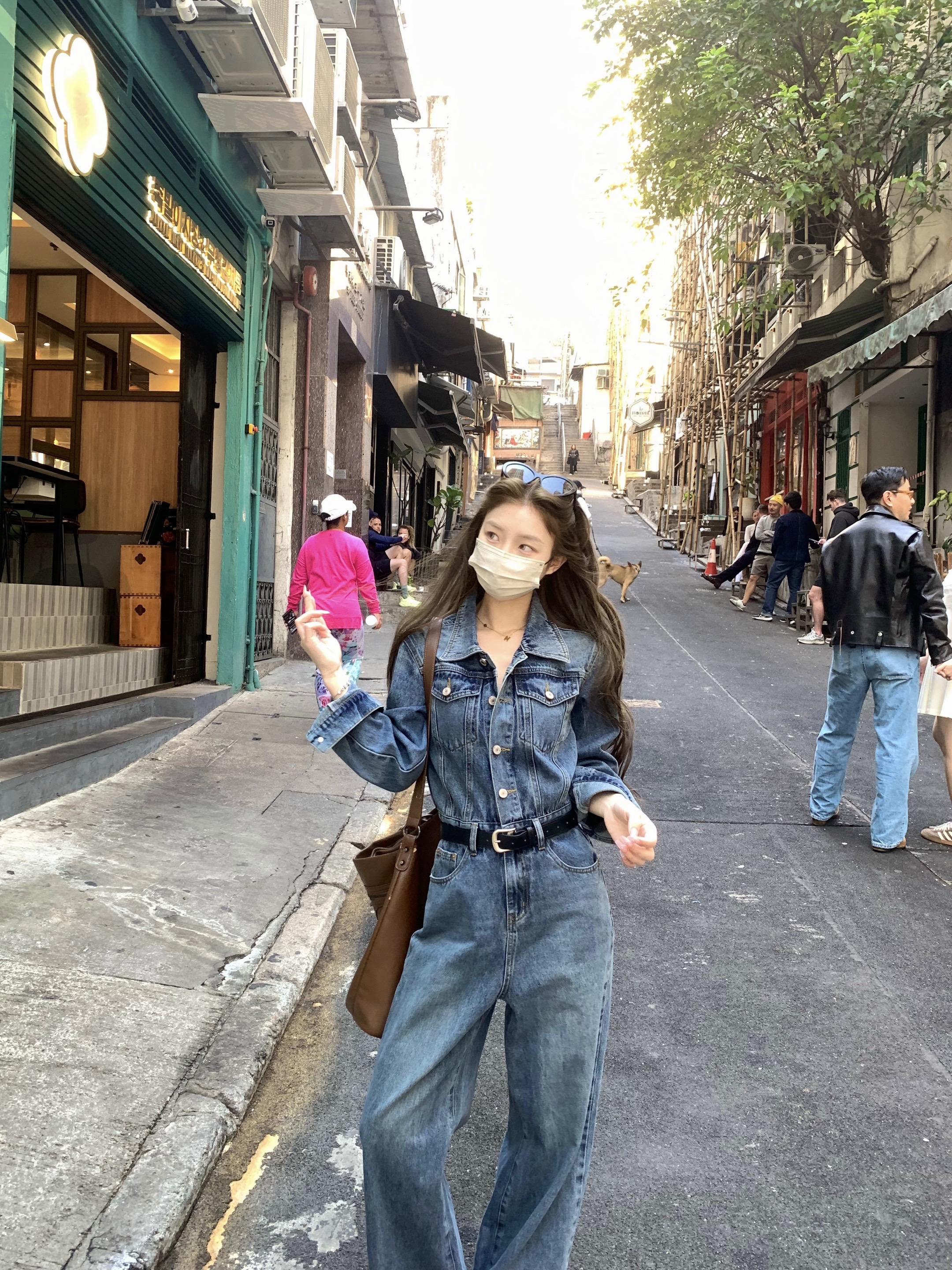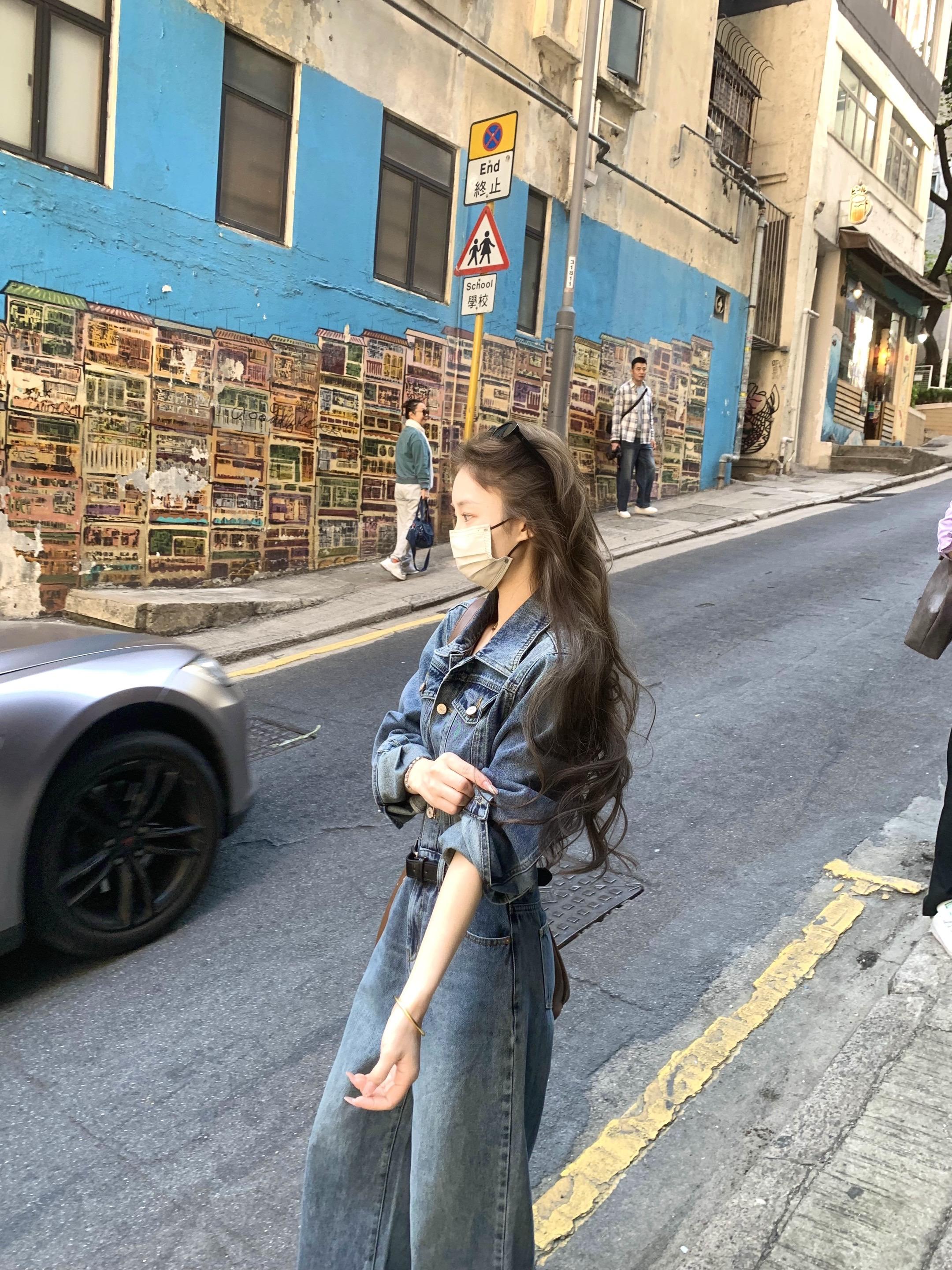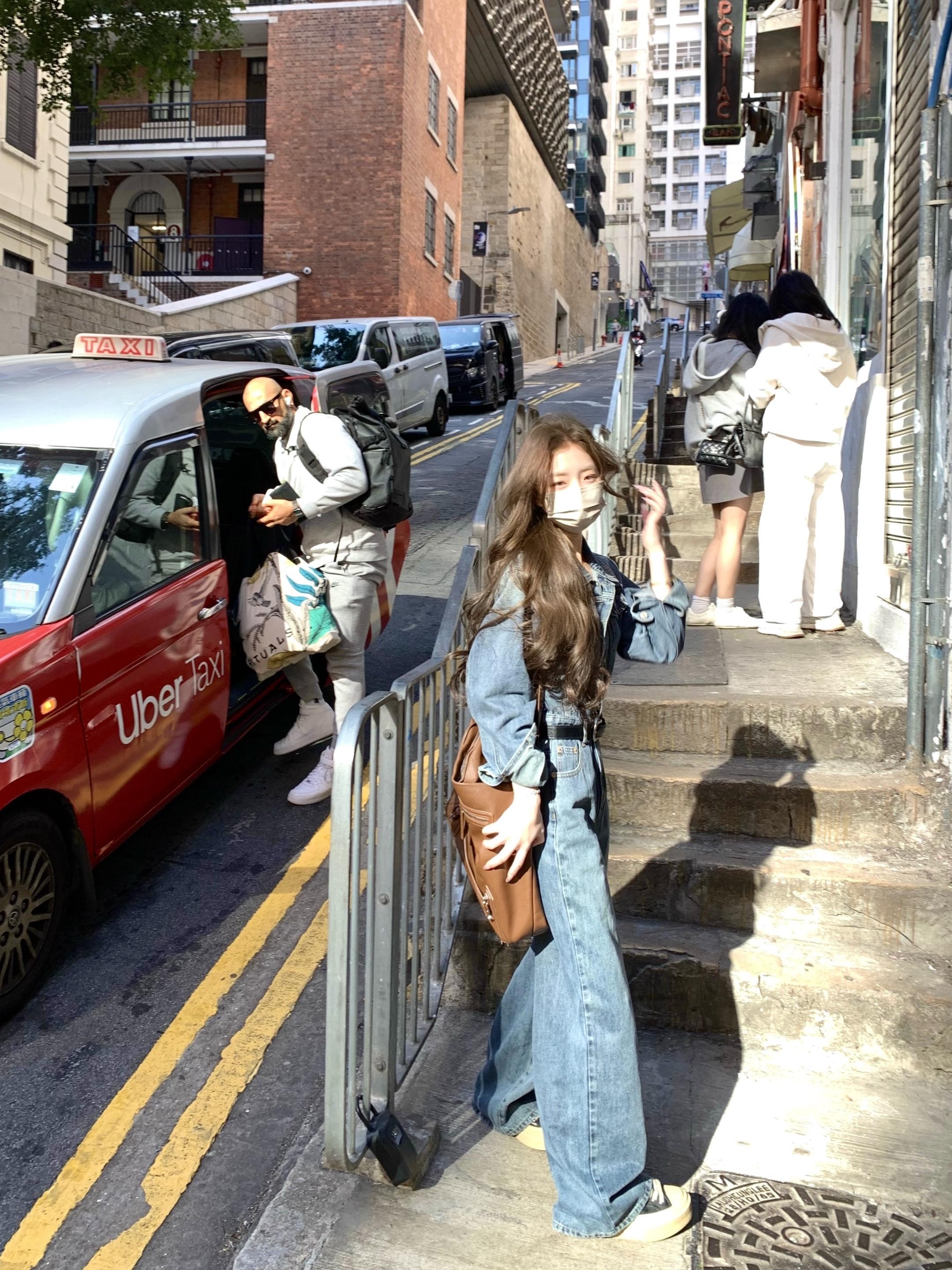 一本正经游客照 穿搭 牛仔裤 复古穿搭 香港