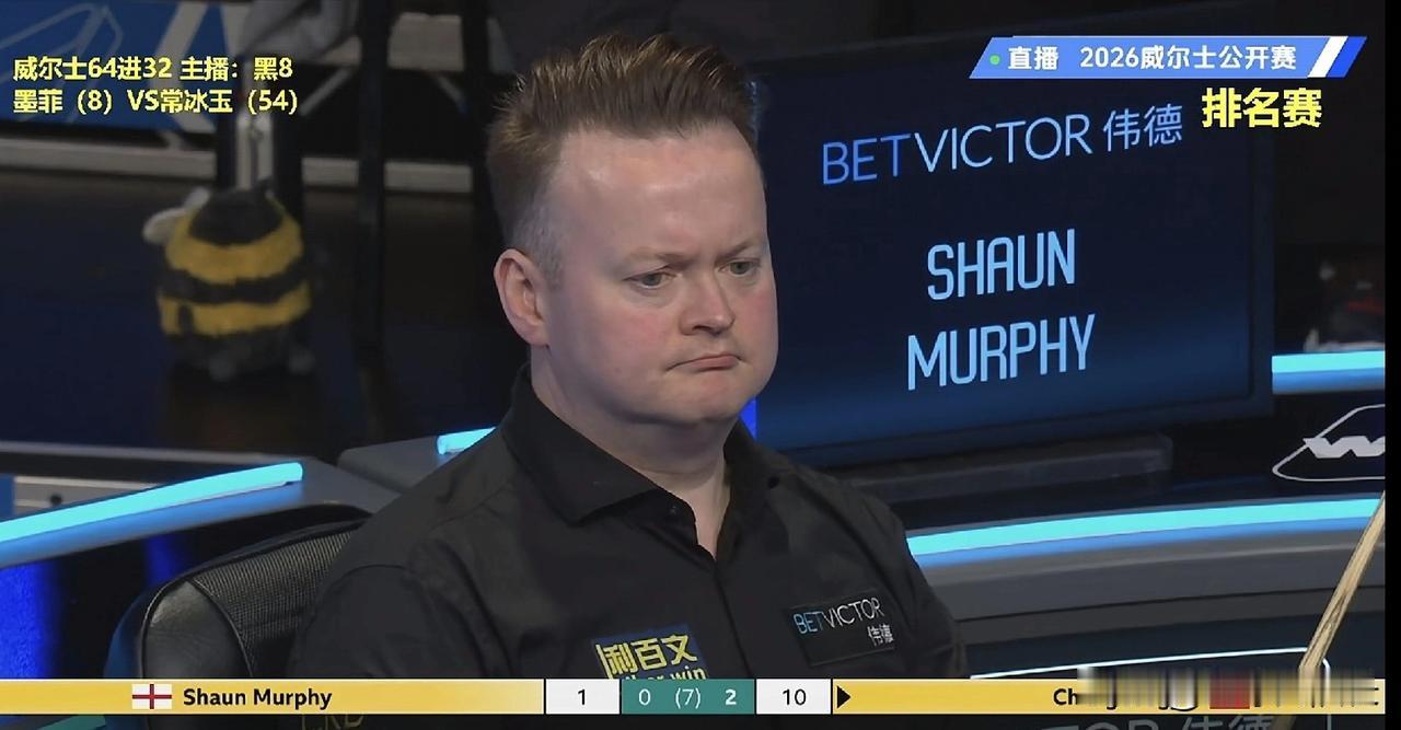 斯诺克威尔士公开赛:常冰玉3-0梦幻开局打懵墨菲,墨菲要比塞尔比还惨吗? 2026斯诺克威尔士公开赛64进32轮次第2比赛日得比赛目前正在进行,中国选手常冰玉迎战魔术师肖恩墨菲,目前前3局比赛过后,常冰玉大比分3比0领先肖恩墨菲并且手握4个赛点。 墨菲的表情已经宣告了这场比赛的结果,除非能有一个4连鞭的大逆转,但至少得先扳回一局再说。 常冰玉本赛季在苏格兰公开赛上晋级决赛,虽然最终不敌韦克林斩获亚军,但基本已经宣告了常冰玉进入第一梯队,今晚要是再拿下墨菲,名气和自信心上将大幅提升,加油!常冰玉。