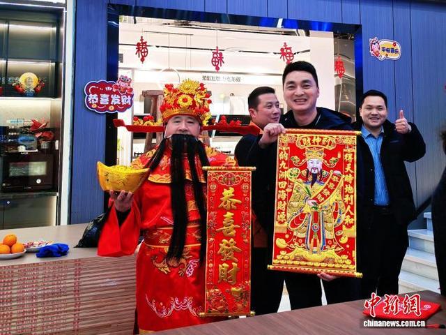 中新网长沙2月24日电(孔亚超)“财神到!好运到!祝咱们企业今年生意兴隆,财源广进,更上一层楼!”2月24日正月初八清晨,伴随着欢快的笑声,一位身着红袍、手持金元宝的“财神爷”走进长沙市芙蓉区东湖街道龙马社区的多家企业。这是该社区精心策划的“财神送福·惠企暖心”新春走访活动的一幕。