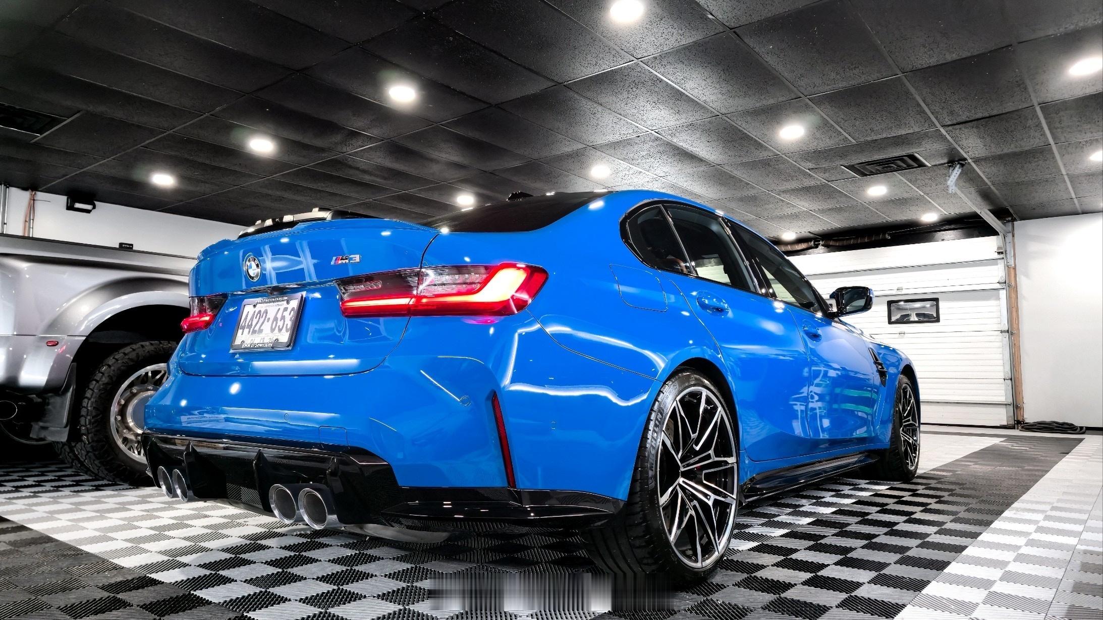这台宝马G80 M3配备的是个性化定制的Laguna Seca Blue车漆,其