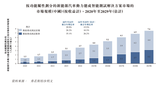 期内,动力总成智能测试设备所占市场份额较大,而动力总成测试服务则录得较高的增长率,反映随着电气化进程提速,外包需求日益增长、测试频率提高及系统层级验证要求不断提升。