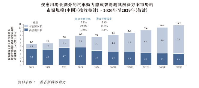 新能源汽车渗透率持续扩大,动力总成系统复杂性日增,以及对先进、智能化及数字化测试解决方案的持续投资,将支持业务增长,并进一步带动新能源汽车及内燃机汽车应用场景的需求。