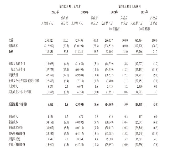 于2023年、2024年及2025年截至9月30日止九个月,该公司收益分别约为3.52亿元、4.23亿元、3.86亿元人民币。