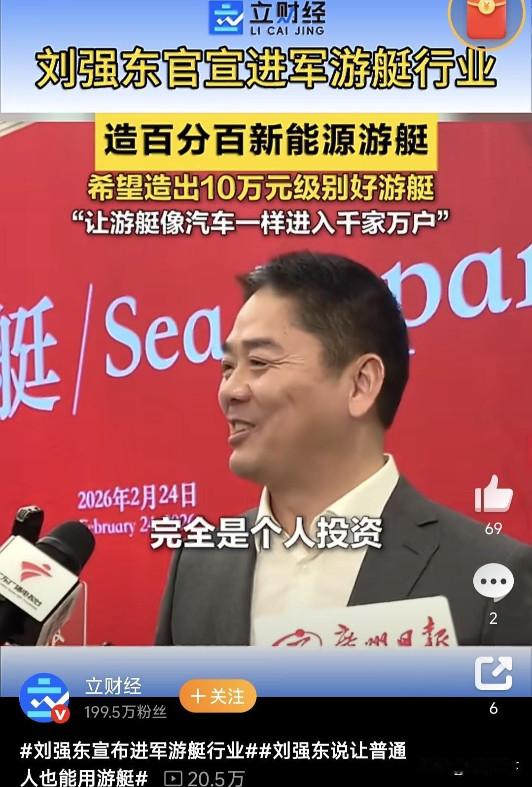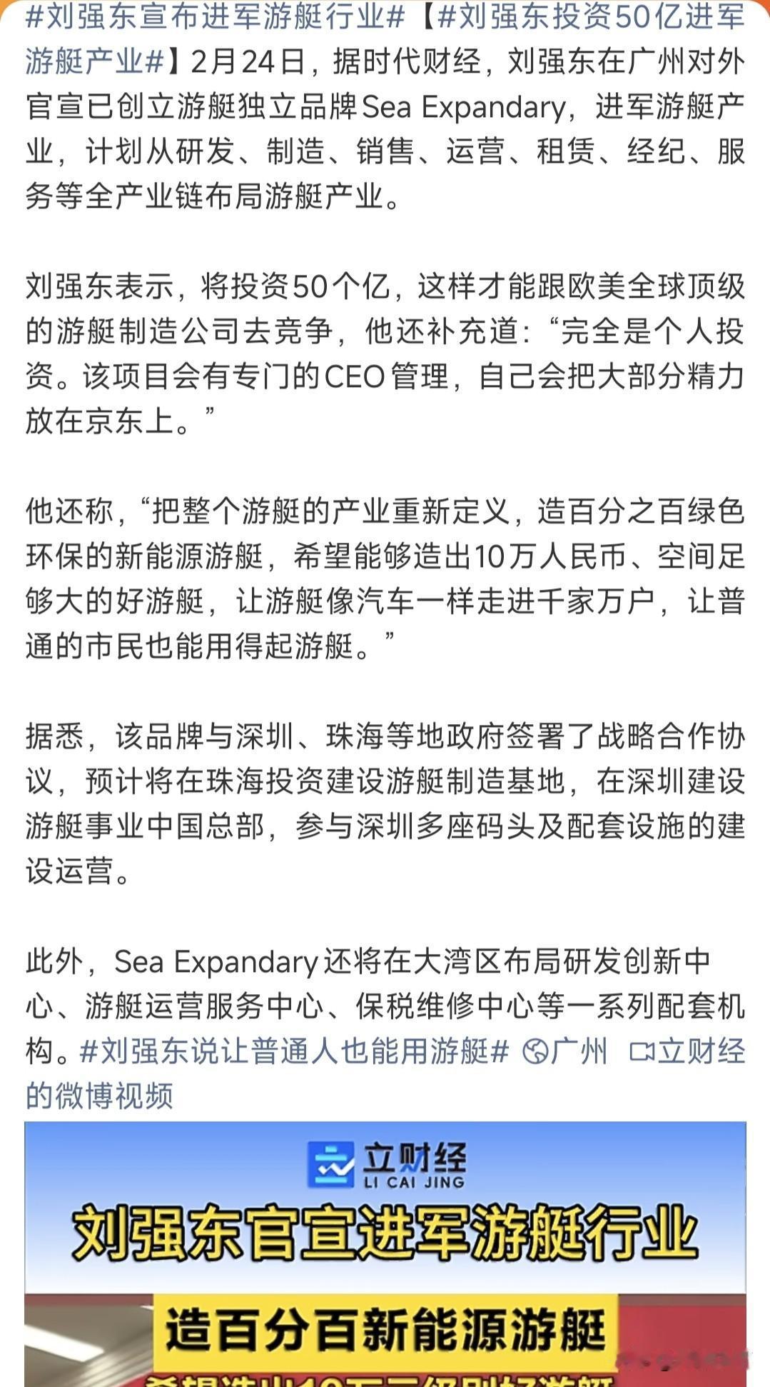 强哥要造游艇了, 10万?!那就不是游艇嫩模,而是游艇三姑六婆[吐舌] 很多网友认为:10万元的游艇,一年维护和停靠费多少? 也有网友表示:那问题来了,十万的游艇在哪里开?杭州的运河让开吗?[偷笑] 不好意思,水上的东西不好走进千家万户[吐舌]。游艇这玩意儿,普通人千万别能玩,这车位还可以找犄角旮旯,船可真不能乱停[看]。 还不如进军电动摩托车🏍️,自己有门店充电维修保养一条龙!京东的口碑在,销量绝对杠杠的。 别人都在搞空中概念,东哥却跑海里了。空中随时可以起飞,没有场地限制。游艇总要有水吧!