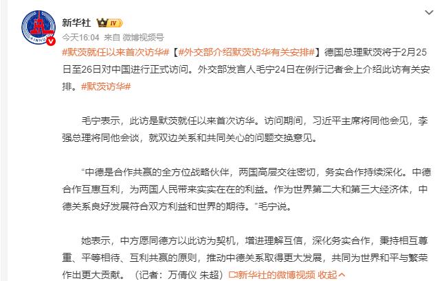 德国总理默茨已经启程来北京了! 2月24日中午,德国总理默茨亮相飞机场,从曝光的画面我们可以看出,当天的德国总理默茨穿一身深蓝色的西装,还佩戴一条黑白围巾,据悉,德国总理默茨要在2月25日到26期间访问北京和杭州。这也是德国总理默茨上任后首次访问北京。 当然了德国总理默茨这次来北京也引起了不少网友和媒体的关注,据悉德国总理默茨这次来主要也就是围绕经济问题而来。这也是法国总统、英国首相来北京之后,欧洲又一位重要贵宾来访。除了德国总理之外,他还携带30位企业代表随行。据悉,在这些企业代表中有来自汽车、化工、生物制药、机械制造、循环经济等领域。相信在德国总理的带领下,中德会更加友好。