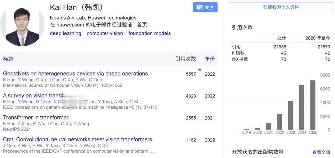 本文有两位共一作者,他们都是华为诺亚方舟实验室研究员。据公开资料显示,其中韩凯(Kai Han)现为华为诺亚方舟实验室专家研究员,博士毕业于中国科学院软件所,硕士和本科分别毕业于北京大学和浙江大学。其主要研究方向为高效深度学习和 AI 基础模型,已在 AI 领域顶会顶刊发表论文 50 余篇,谷歌学术累计被引 2.1 万余次,其中 GhostNet 和 TNT 入围 PaperDigest 年度最具影响力论文榜单。他还担任 NeurIPS、ICML、ICLR、CVPR、ICCV、AAAI 和 ACMMM 等顶会领域主席,入围斯坦福全球 Top 2% 科学家和爱思唯尔中国高被引学者榜单。