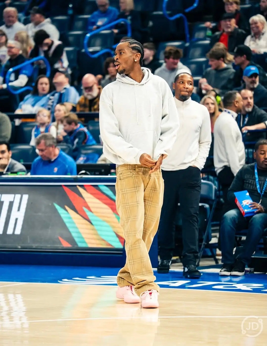 昨日亚历山大穿着小粉鞋参与热身雷霆战胜骑士雷霆vs猛龙雷霆