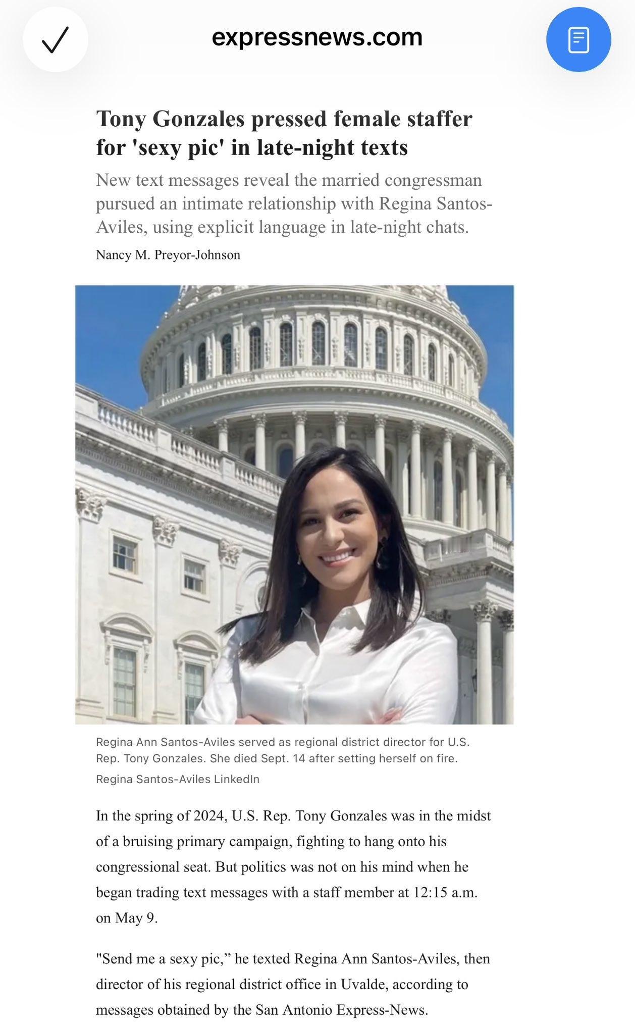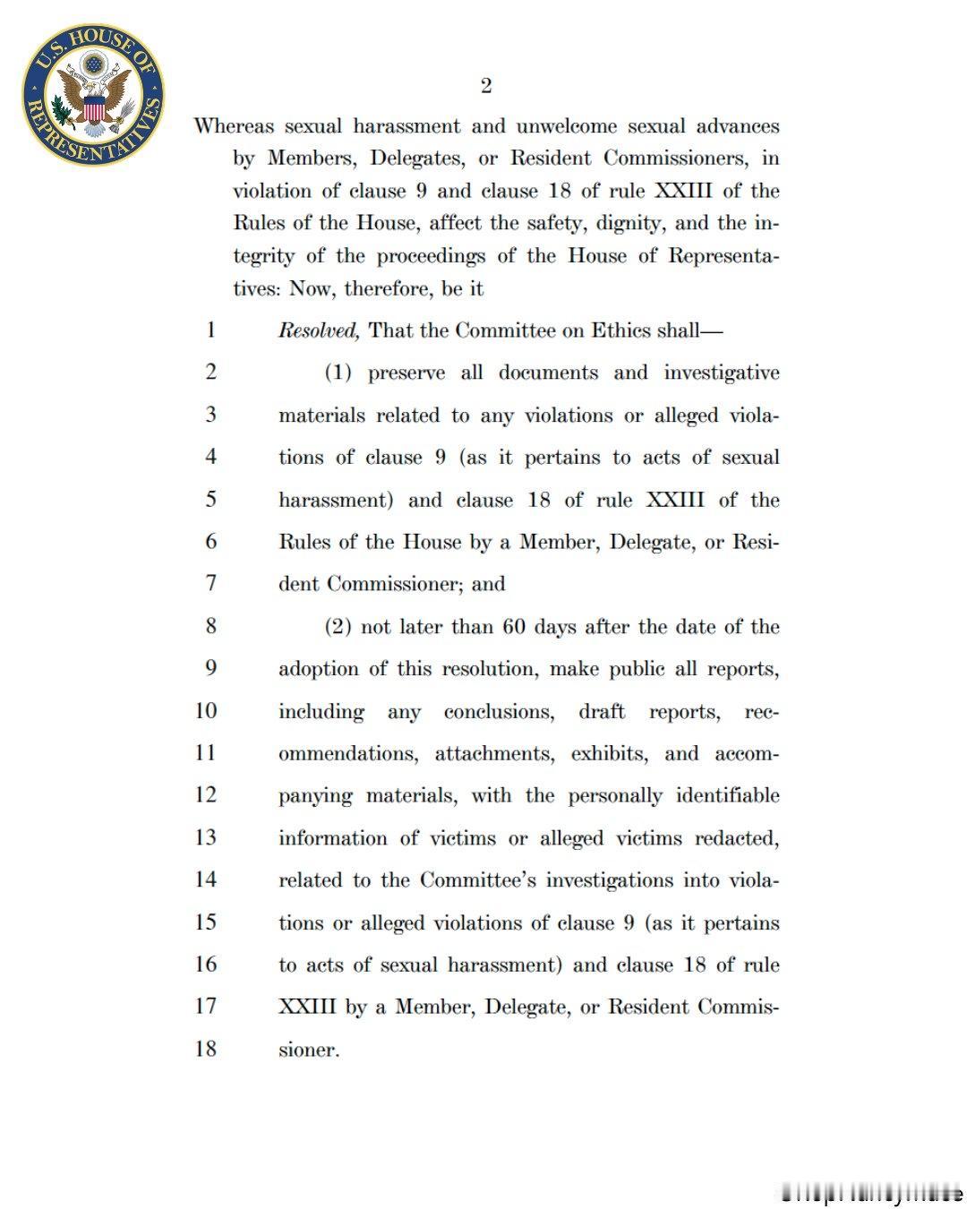 美国国会众议员南希.梅茜Nancy Mace(南卡罗来纳州): “我们已提交一项决议,指示道德委员会保存并公开所有针对国会议员性骚扰和不受欢迎的性挑逗行为的调查记录和报告。托尼·冈萨雷斯(得克萨斯州共和党众议员,和女助手私通,发淫秽短信,这些短信被女助手丈夫发现后,女助手自焚自杀)只是冰山一角。 众议院绝不容忍性骚扰或不受欢迎的性挑逗。我们绝不会让华盛顿的当权派继续包庇自己人。就此打住。”