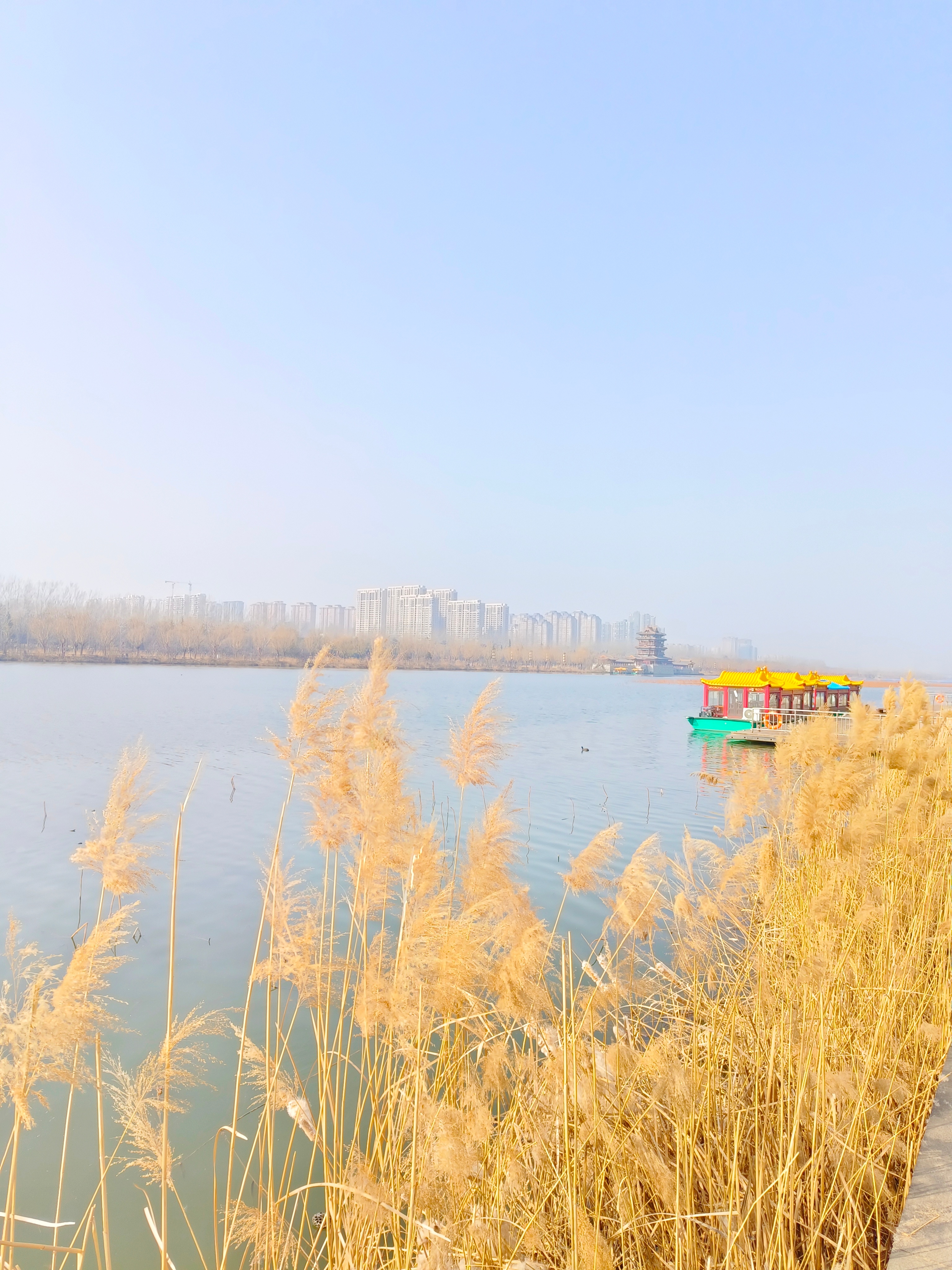 抵达临汾,我最先奔赴的便是汾河。此前总以为,这条黄河最大的山西支流,该是黄河般的浑浊奔涌,却不料晴日之下,它竟美得让人心折。波光潋滟,浮光跃金,岸边芦苇轻摇如絮,残荷枝桠凝着冬日的清瘦,《诗经》里“蒹葭苍苍,白露为霜”的悠远诗意,仿佛就藏在这拂面的河风里。站在河畔,才真正读懂这条河对三晋大地的意义。汾河是黄河在山西境内最大的支流,全长713公里,自北向南纵贯山西中部,如大地的中轴线,撑起了三晋的地理骨架。它浇灌出富庶的临汾盆地,滋养两岸生灵,是山西城市用水、农业灌溉、生态涵养的重要水源,也是三晋文明名副其实的母亲河。从尧、舜、禹的上古圣世,到晋、唐的盛世风华,山西历史上诸多辉煌文明,都沿汾河两岸生长;太原、平遥、介休、临汾等一座座古城古都,皆因汾河滋养而兴盛。黄河是山西的界河,而汾河,是真正扎根在三晋泥土里的生命之河。在尧帝故里,与这条承载千年文明的河流相遇,心中满是安宁与震撼。尧庙探源:走进华夏祖庭的千年脉络
