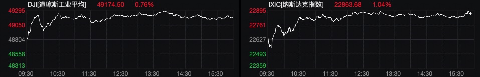 盘面上,大型科技股多数上涨,特斯拉、苹果涨超2%,亚马逊、微软涨超1%,英伟达、Meta小幅上涨,谷歌下跌。