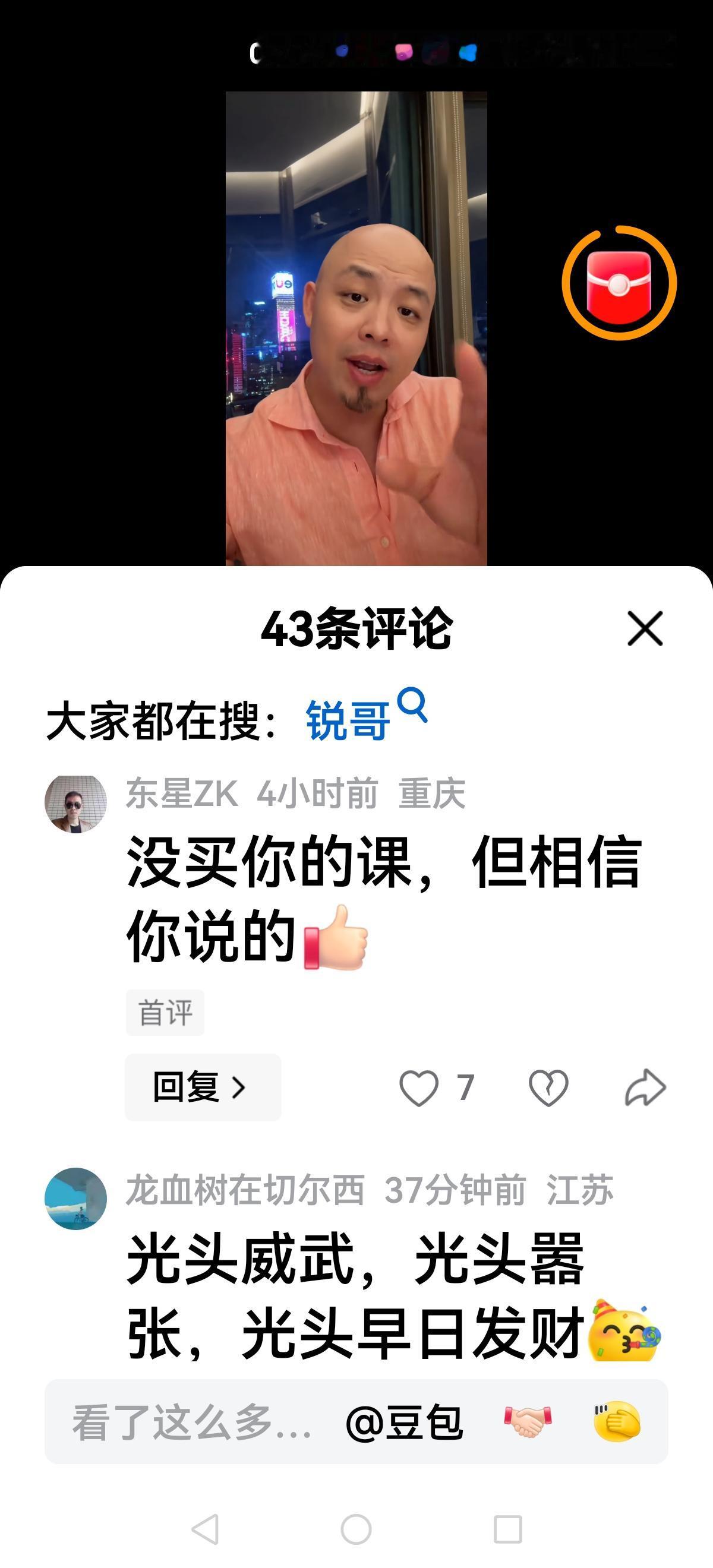 【熊出没】 一个卖大米与牙膏 一个贩卖课程 真的让人说对了,贩卖焦虑,挑动对立,最后收割韭菜,一个北什么卖大米与牙膏,一个卖课程。 真不敢想象这位光头卖课程能讲什么?真有人会去听吗? 走极端劝大家把住的地方卖了,太可笑了,多年前高位上车的人,大多数也是自住房,怎么可能现在卖呢? 这位光头哥估计也是昙花一现吧