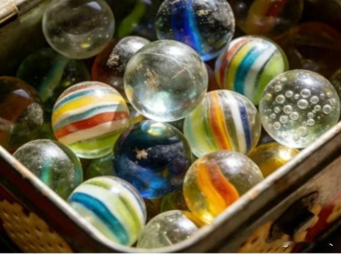 你家里有哪些70年代的老物件呢?下面这些老物件有谁能全部叫出名字,又有谁全部使用过? 就说这最下面的玻璃球吧,有的地方叫琉璃球、弹珠。 在古代是古法烧制的工艺品,很贵。 而近代我们玩的玻璃球是工业玻璃,便宜还结实。 记得我小时候最爱玩,几个人比赛,挖一个小坑,然后进行包袱剪子锤,谁赢了先弹,把对方的碰进小坑内就赢了他的,我那时在东北,曾赢到100个,买给小货朗一分一个,足足让我挣了一元钱,别小看一元钱,它能保证我看近二十次露天电影。